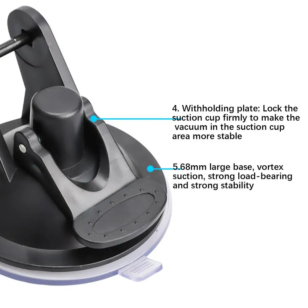5. suporte de câmera ajustável: melhore suas habilidades fotográficas ao ar livre com aperto e ângulo de porca ajustáveis, atendendo a todas as suas necessidades. A base da ventosa garante uma aderência forte e confiável no painel ou no para-brisa do seu carro para uma foto perfeita.