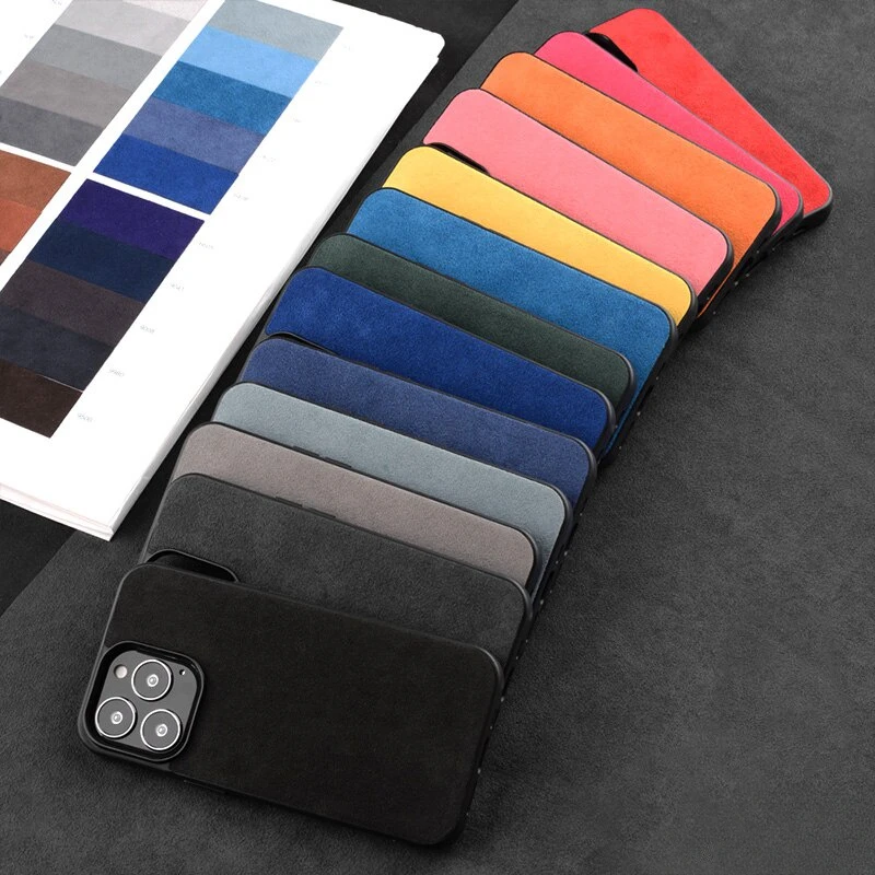 - > Alcantara camurça couro fino caso de telefone para iphone 17 pro max 16 pro 16e ar 15 14 plus 13 11 12 mini xs xr casca dura