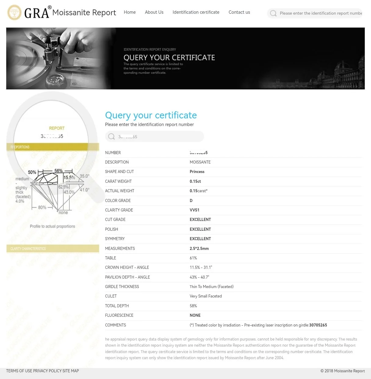 Tipo de pedra: D Cor VVS1 Moissanite