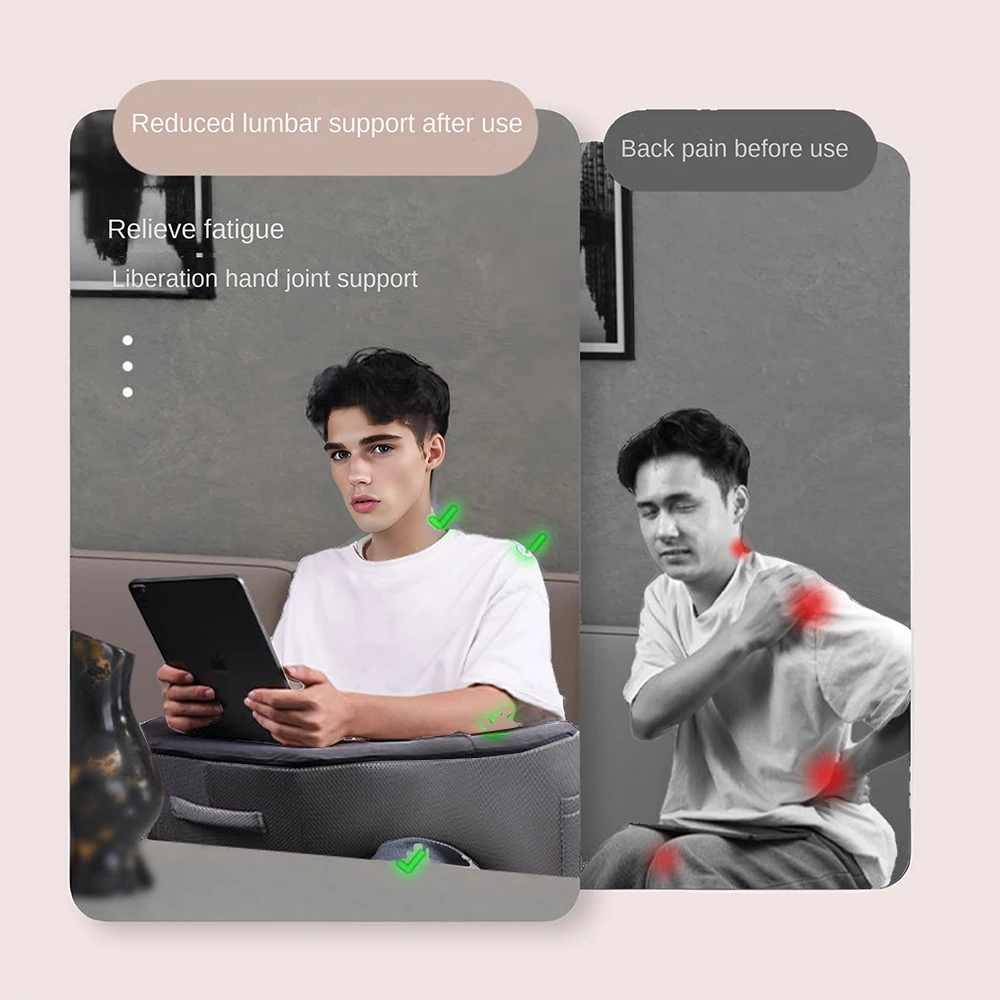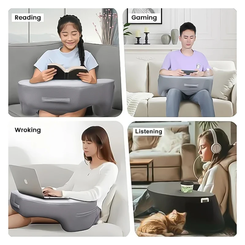 Almofada de leitura para jogos, mesa de mapa e descanso de braço com copo e suporte para telefone, suporte para laptop, bolsos grandes, confortável para trabalho, jogos