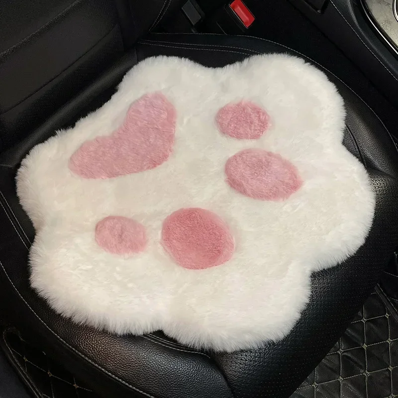 Almofada universal para assento de carro com pata de gato, pelúcia quente, quatro estações, aquecimento acolchoado, almofada para carro