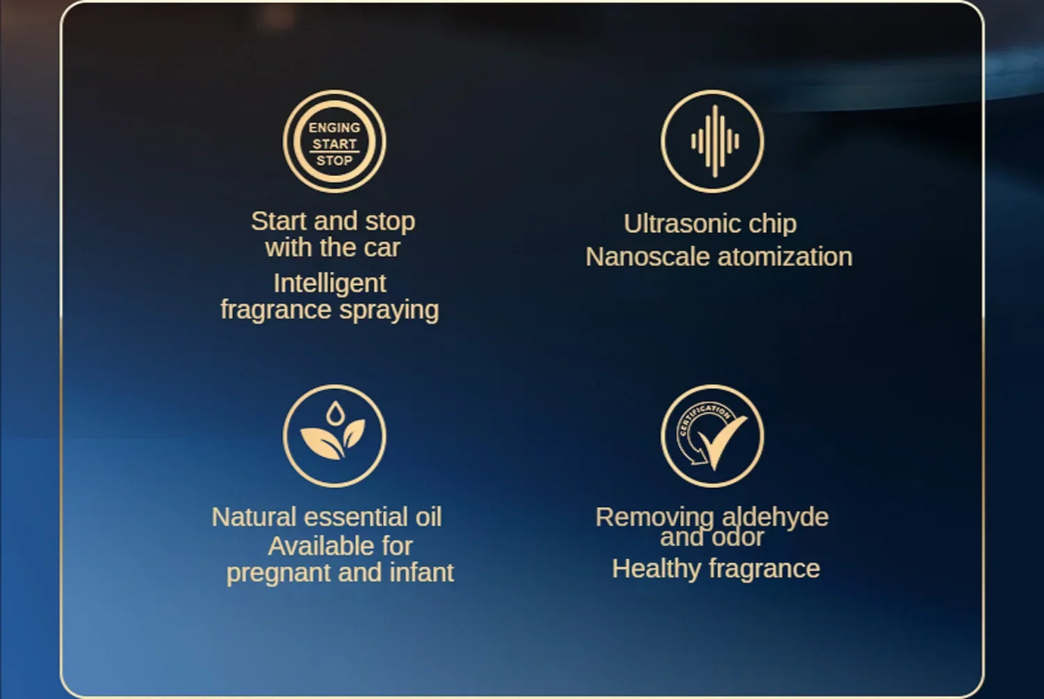 - > Ambientador de ar inteligente para carro, difusor de fragrância, umidificador de névoa, difusor de óleo essencial, aromaterapia, acessórios interiores