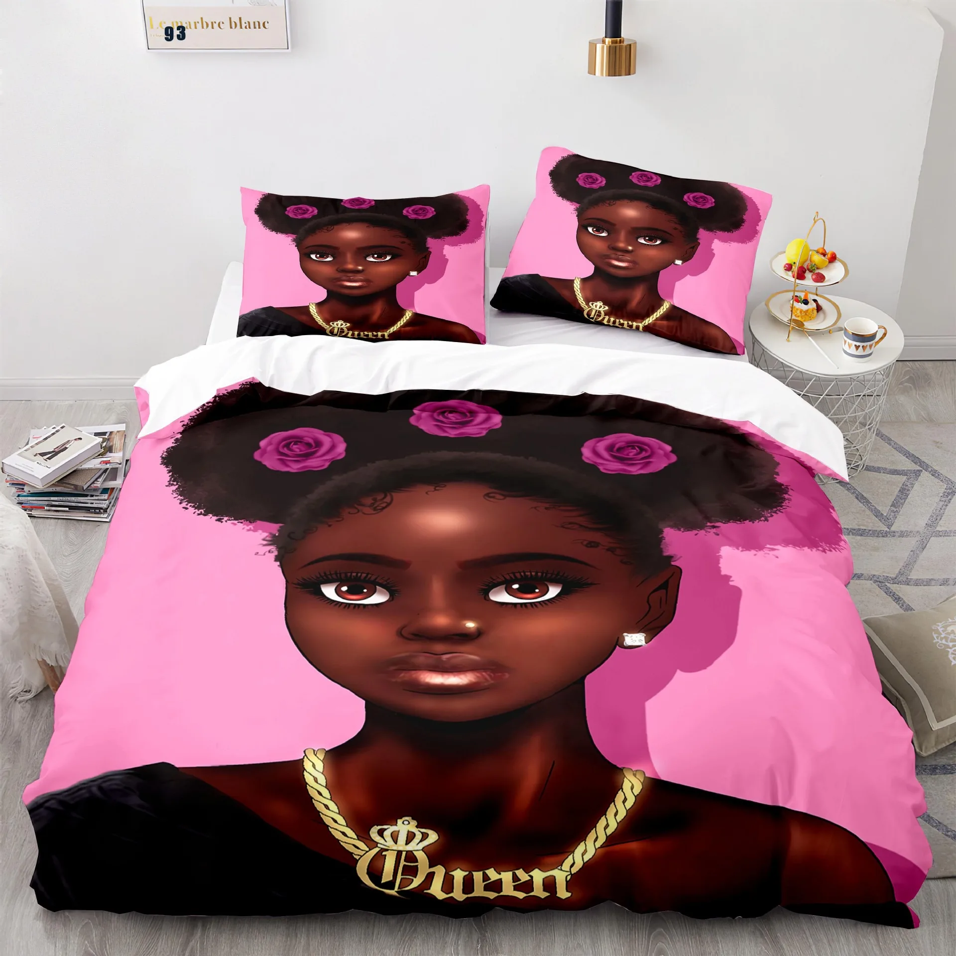 Americano preto menina capa de edredão preto menina mágica fronha conjunto cama meninos meninas quarto decoração presente único tamanho duplo