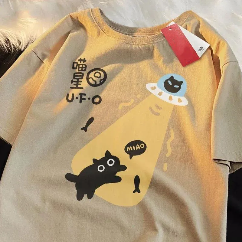 Americano retro manga curta camiseta masculina/feminina 2025 verão novo coreano ins estilo neutro em torno do pescoço topo
