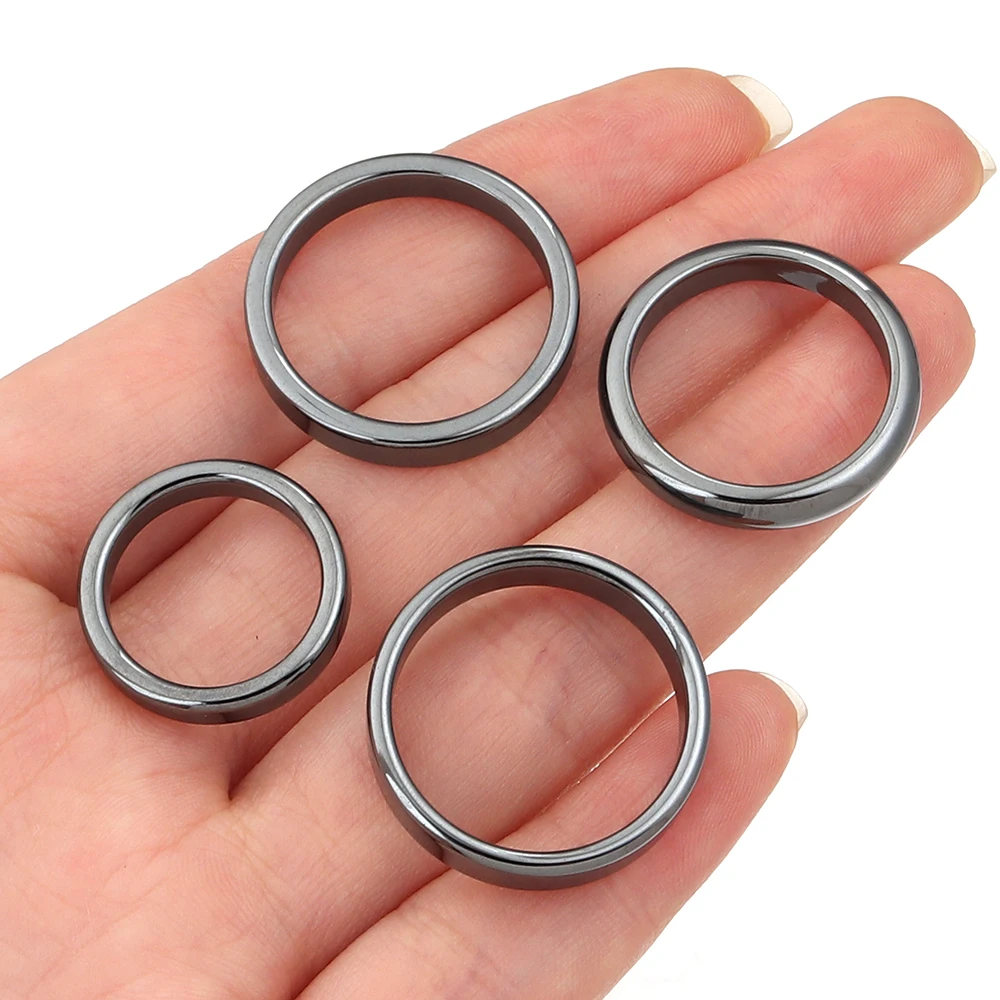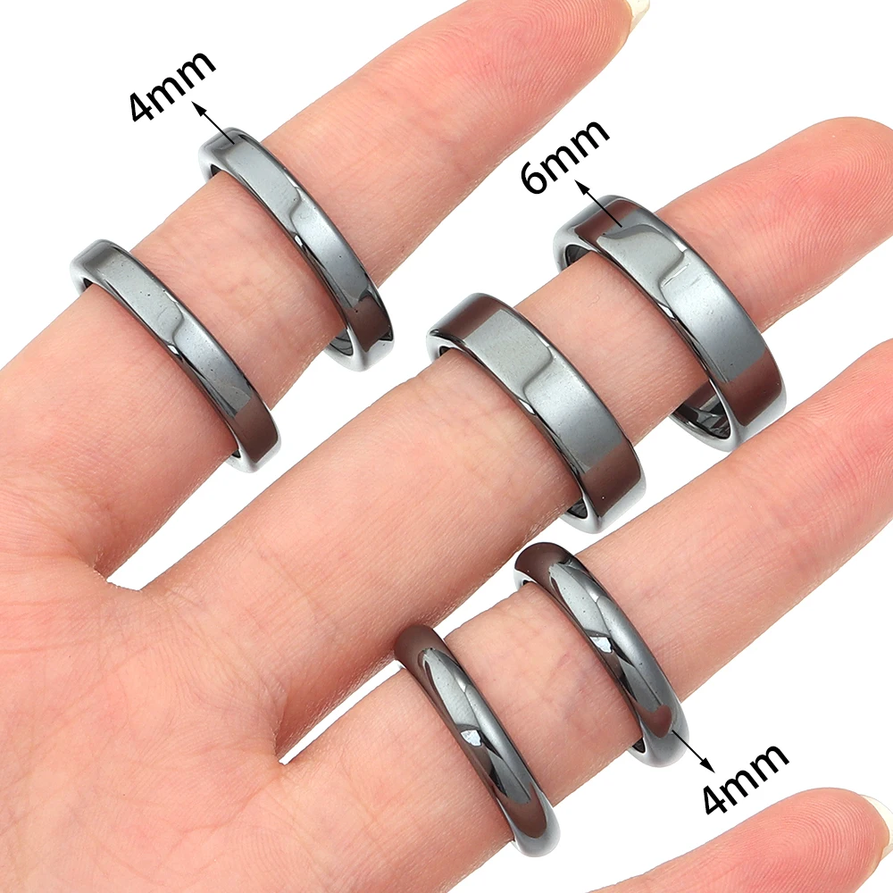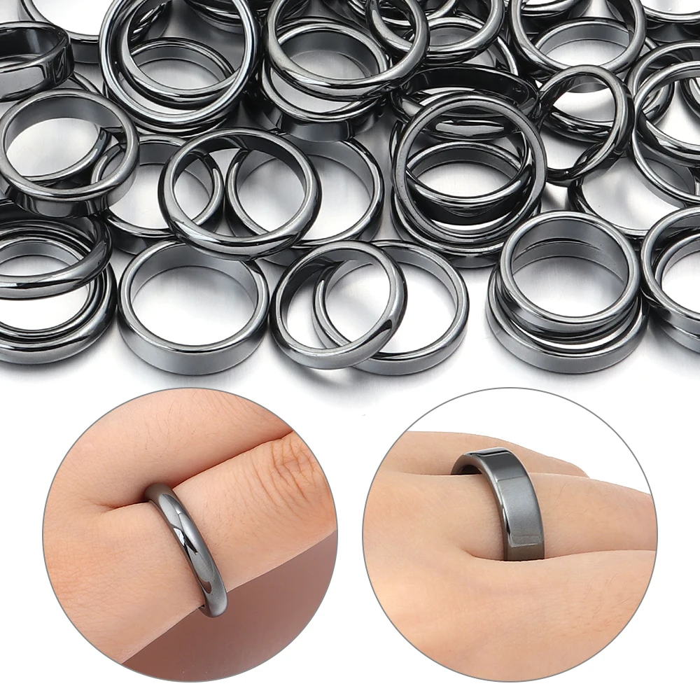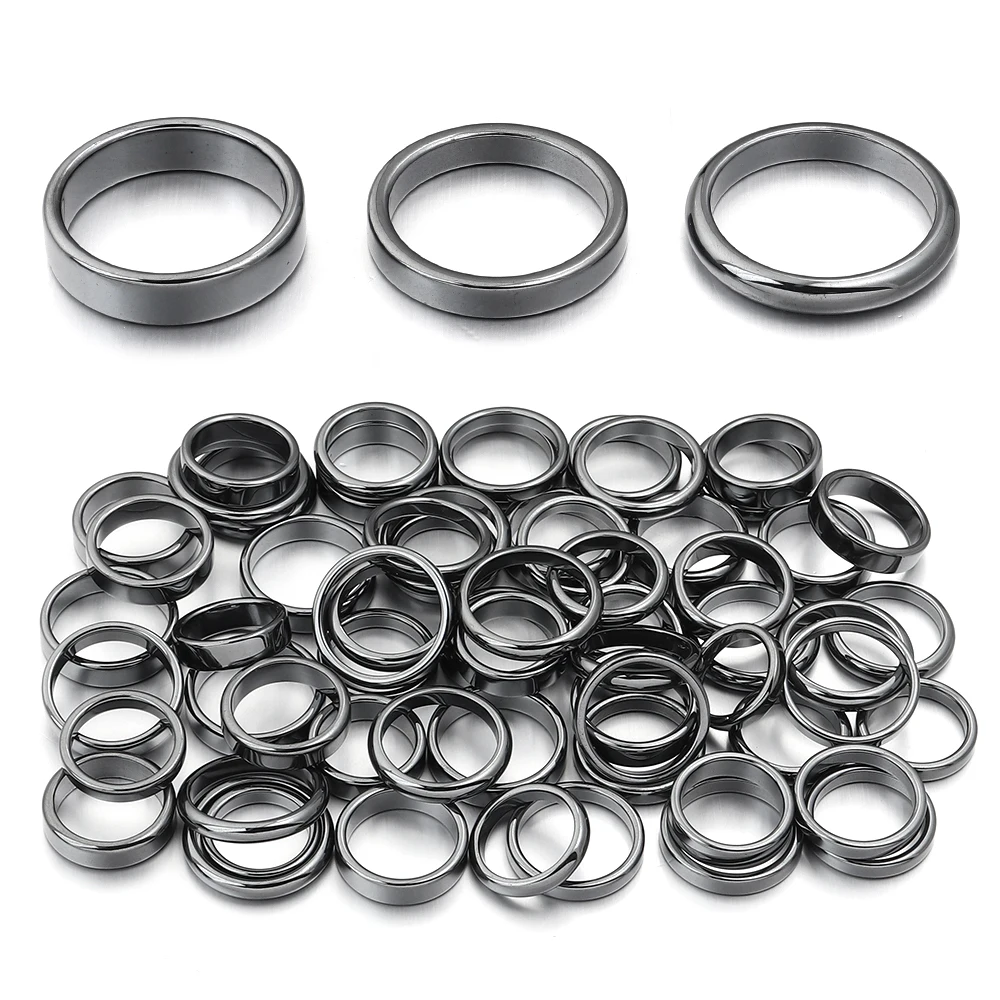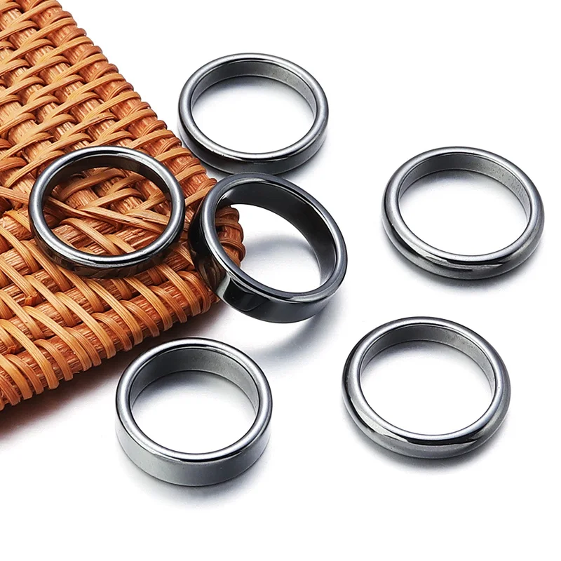 - > Anéis de pedra de hematita natural 6 tamanhos 16-21mm anel de hematita preta redonda plana para mulheres presente masculino acessórios de joias de casamento