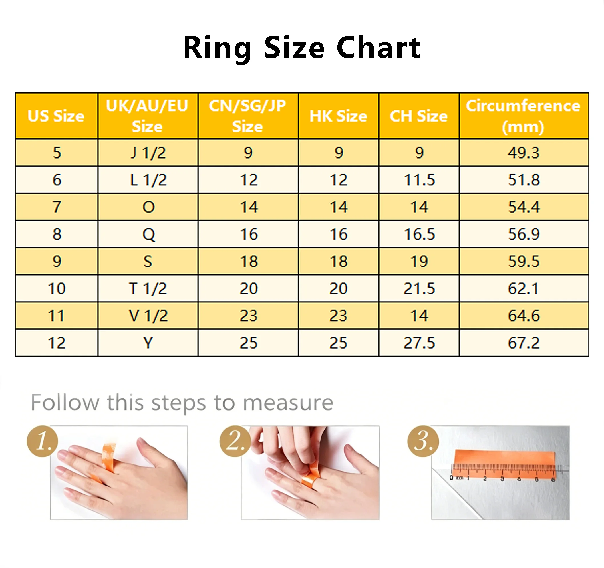 Detalhes do tamanho: TABELA DE TAMANHOS DE ANEL