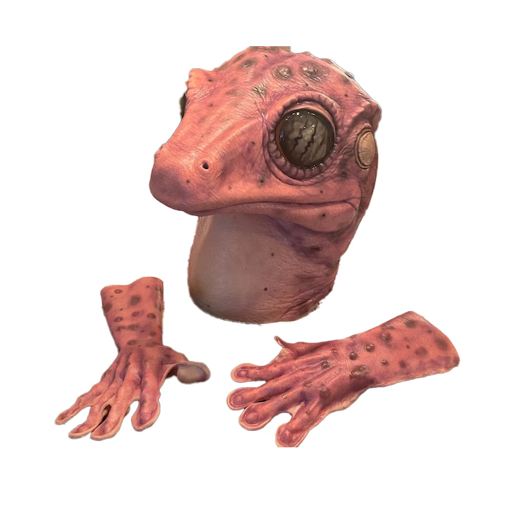 Animal sapo lagarto máscara de látex luvas cosplay engraçado réptil alienígena látex capacete halloween carnaval festa traje adereços presentes