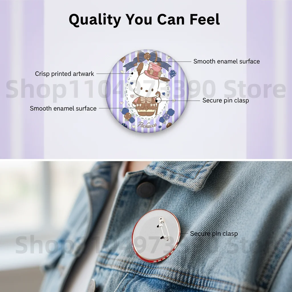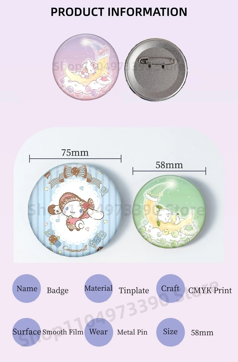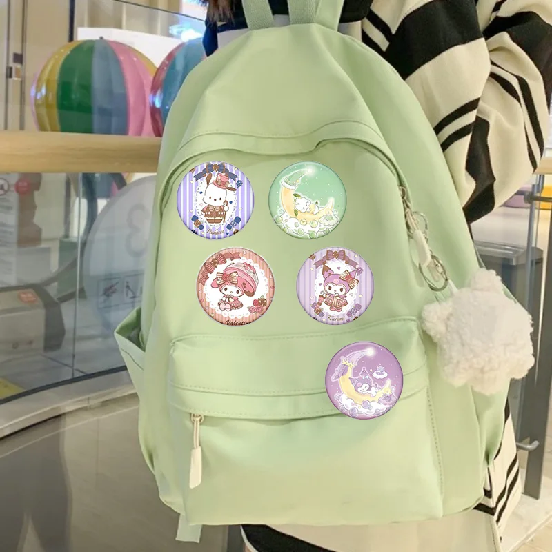 Anime cinnamoroll pochacco botão pino olá kitty figura dos desenhos animados kuromi emblema para saco moda cosplay traje lapela broche presentes