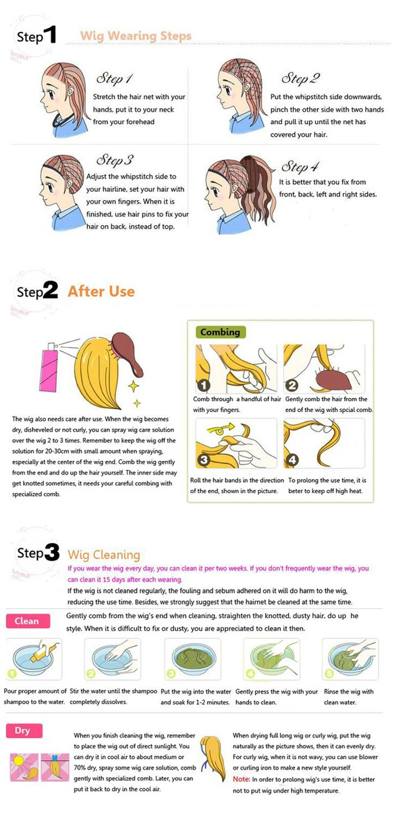 ▷ Instruções de cuidados: As fibras são resistentes ao calor, mas não recomendamos modelagem térmica, a menos que você tenha experiência anterior ou ajuda profissional.A faixa de temperatura é 250-300°F (120-150°C) para ferros quentes, 160-175°F (70-80°C) para água quente.