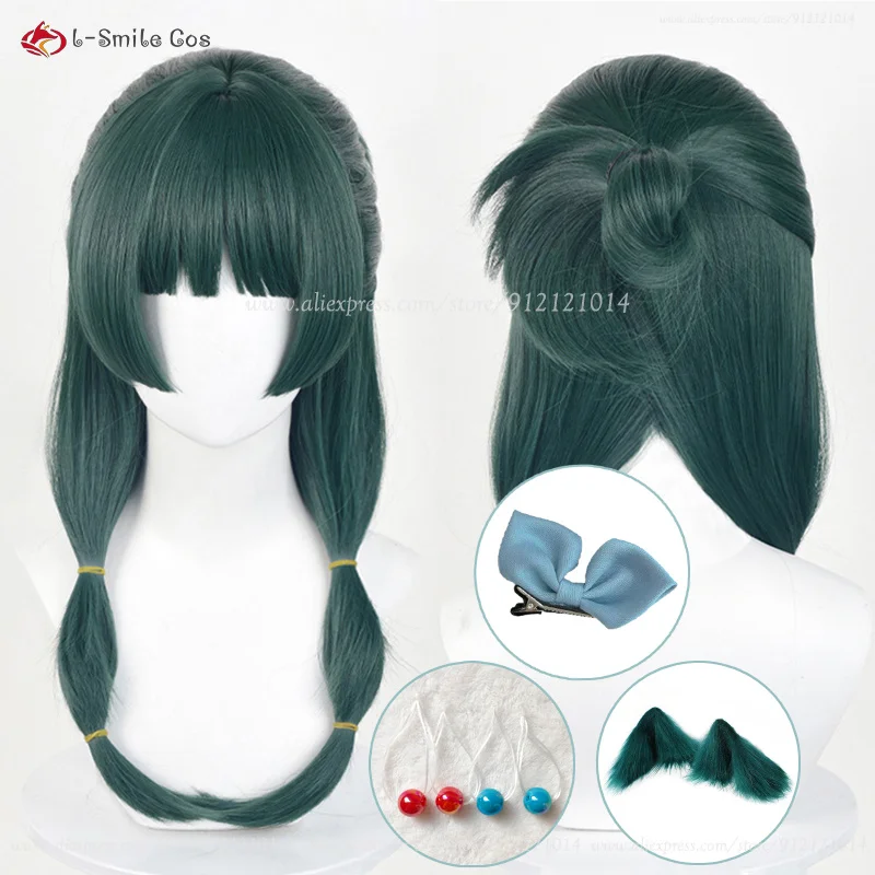 Anime maomao peruca cosplay 50cm longo verde escuro Mao perucas resistente ao calor cabelo sintético maomao conjunto de acessórios cosplay