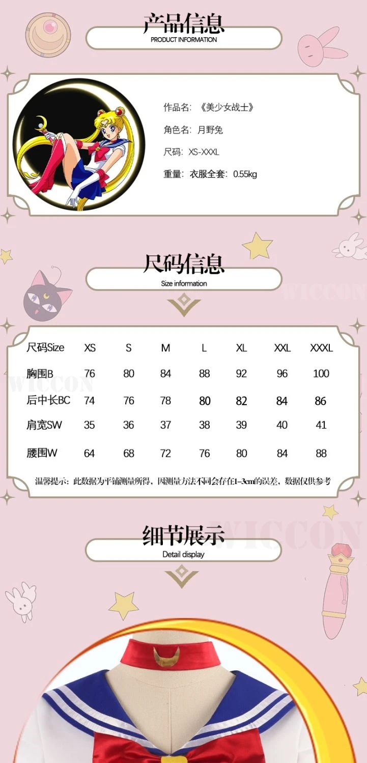 Anime Marinheiro Cosplay Traje para Mulheres, Uniforme Tsukino Usagi, Roupa de Vestido, Peruca, Headband, Lua, Meninas, Festa de Carnaval