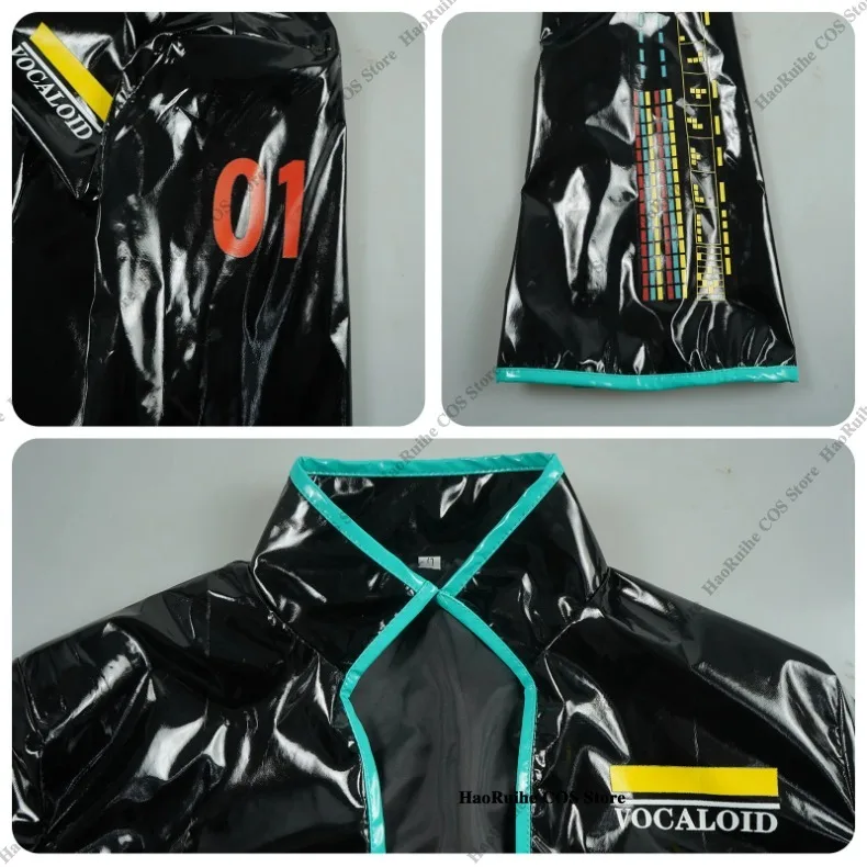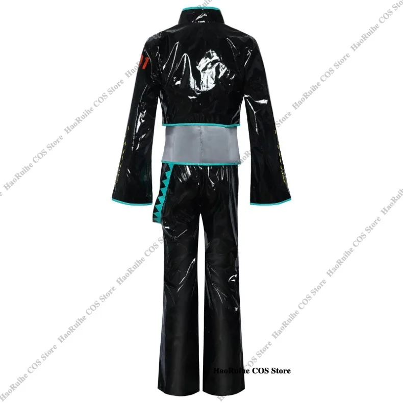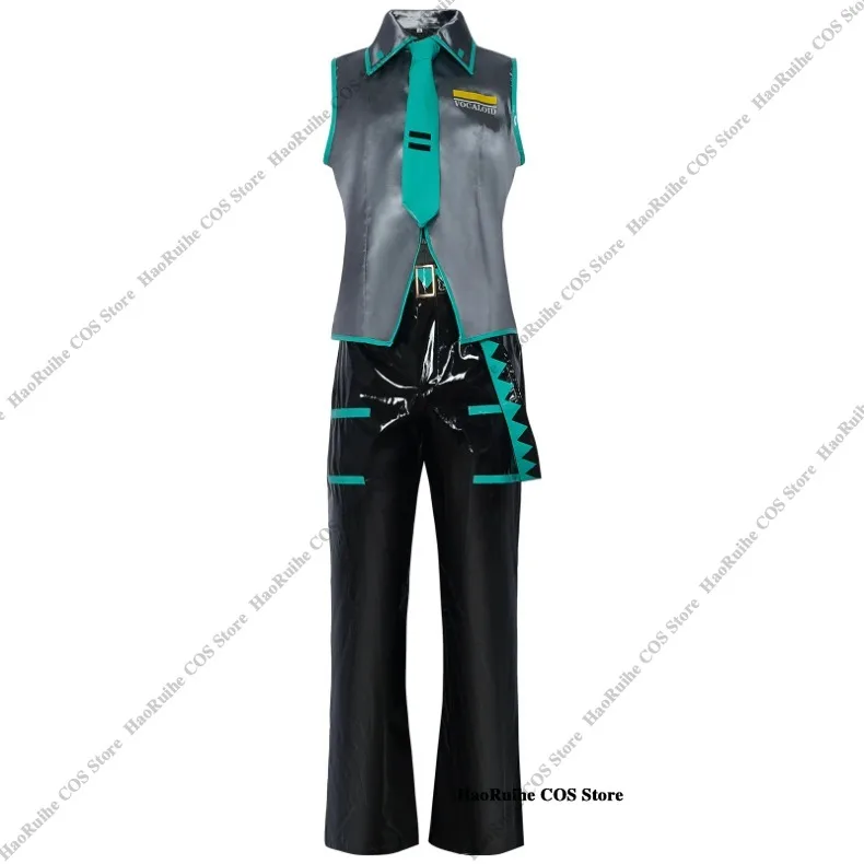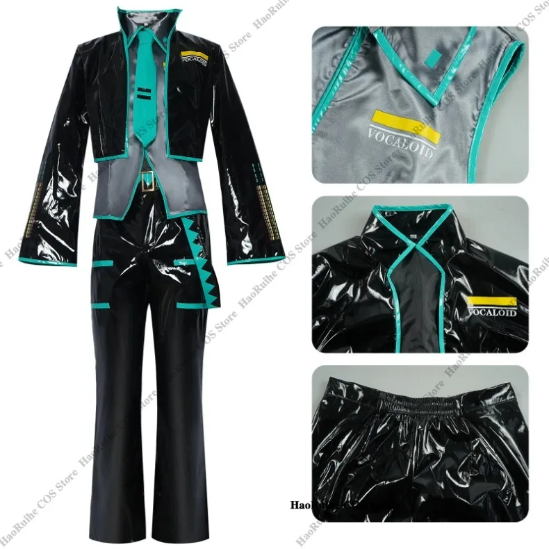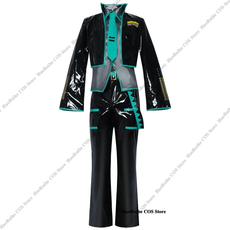 Anime mikuo versão masculina cosplay traje peruca verde uniforme preto jaqueta de couro do plutônio camisa fantasia roupa de festa de halloween feminino