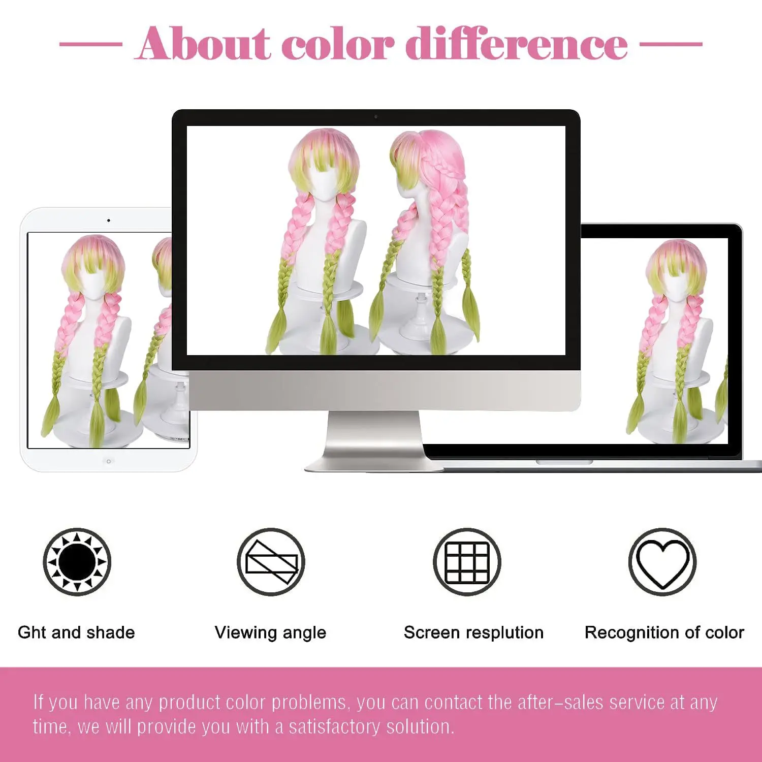 Anime braided wig: Pink and green