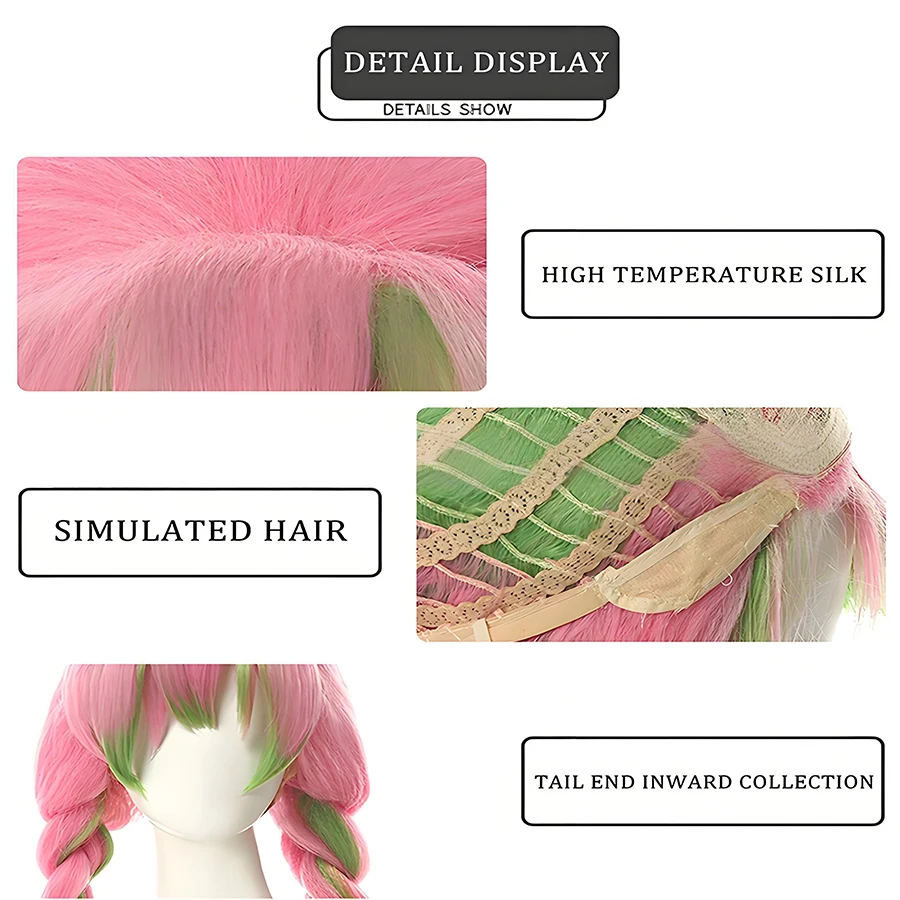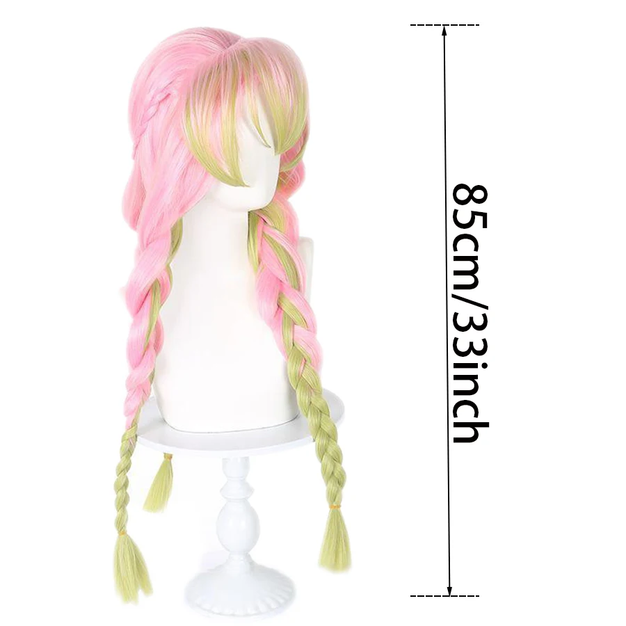 - > Anime mitsuri kanroji cosplay peruca sintética longa rosa verde trança resistente ao calor cabelo autêntico perucas cosplay
