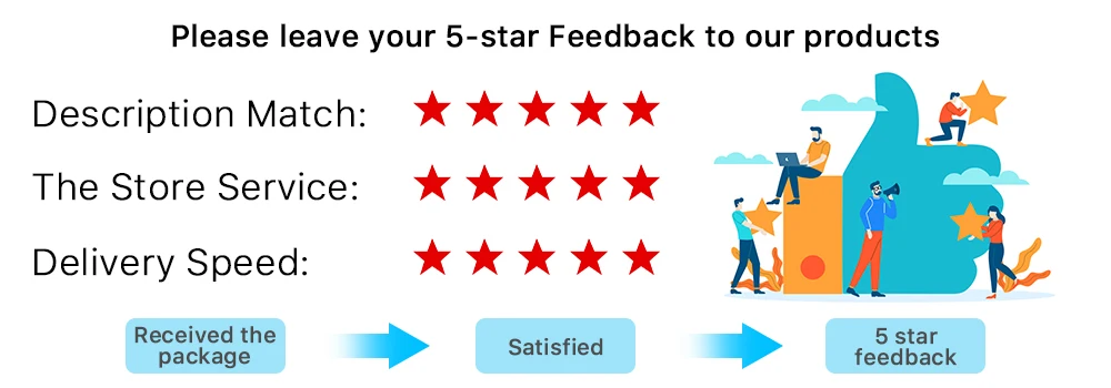 1.Sua satisfação e feedback positivo são muito importantes para nós. Deixe um comentário positivo e 5 estrelas se estiver satisfeito com nossos itens e serviços.