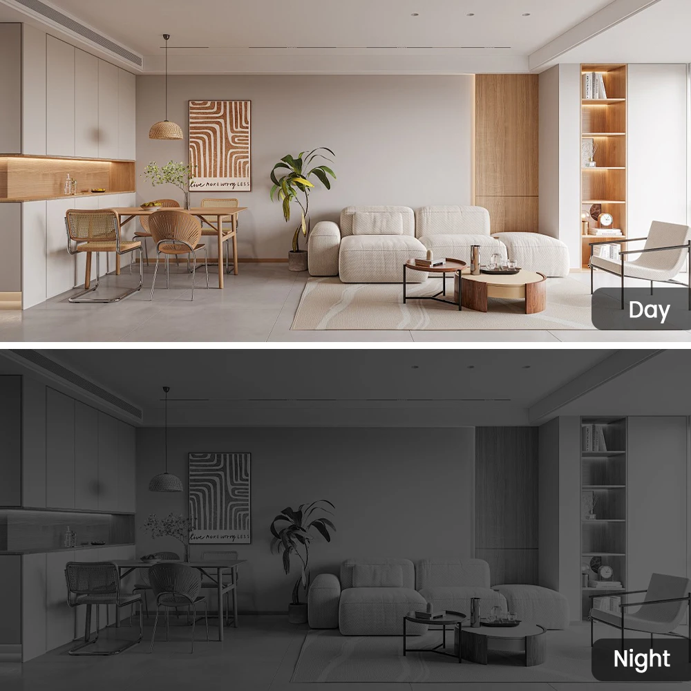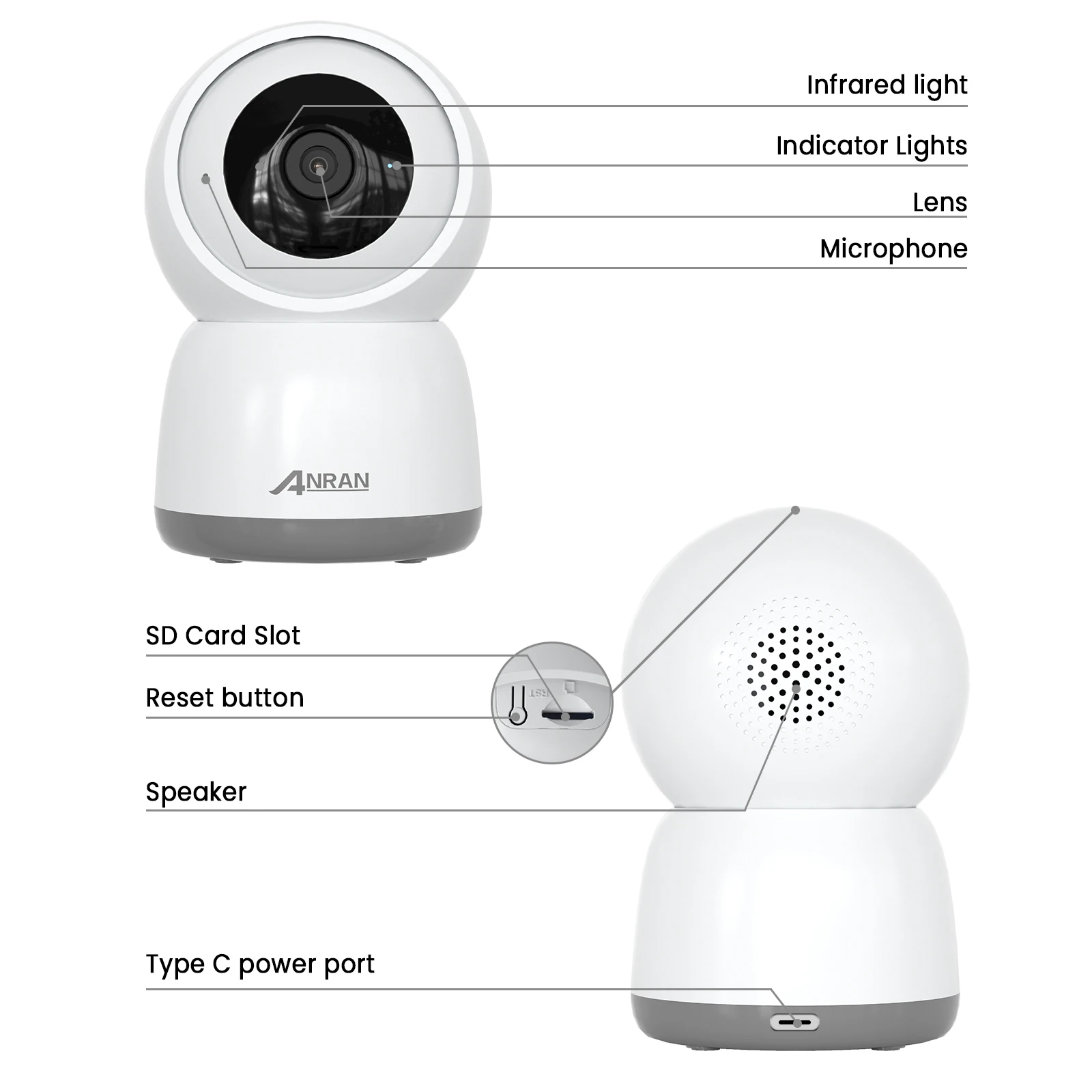 A câmera suporta 355° rotação horizontal e 55° rotação vertical, que pode fornecer um alcance de monitoramento mais amplo, e a direção de monitoramento da câmera pode ser ajustada manualmente através do aplicativo ANRAN.