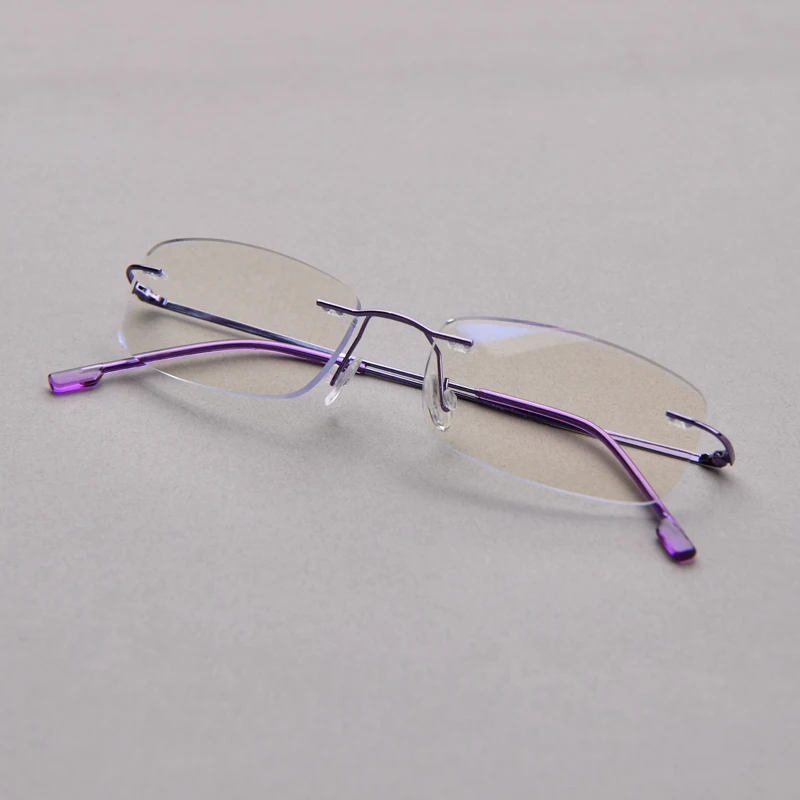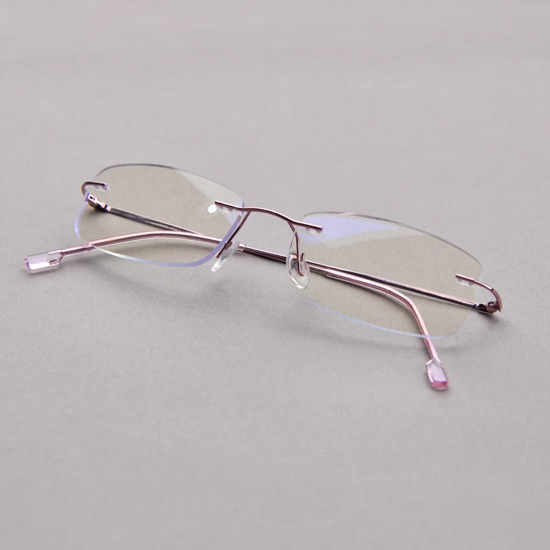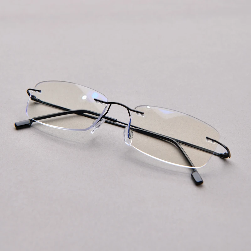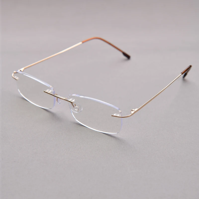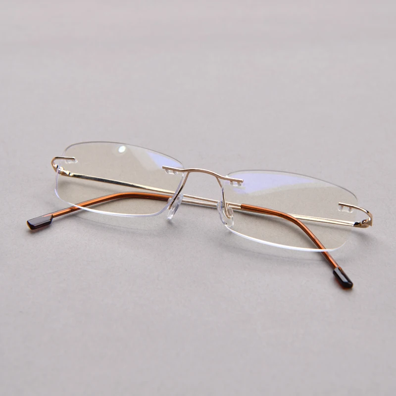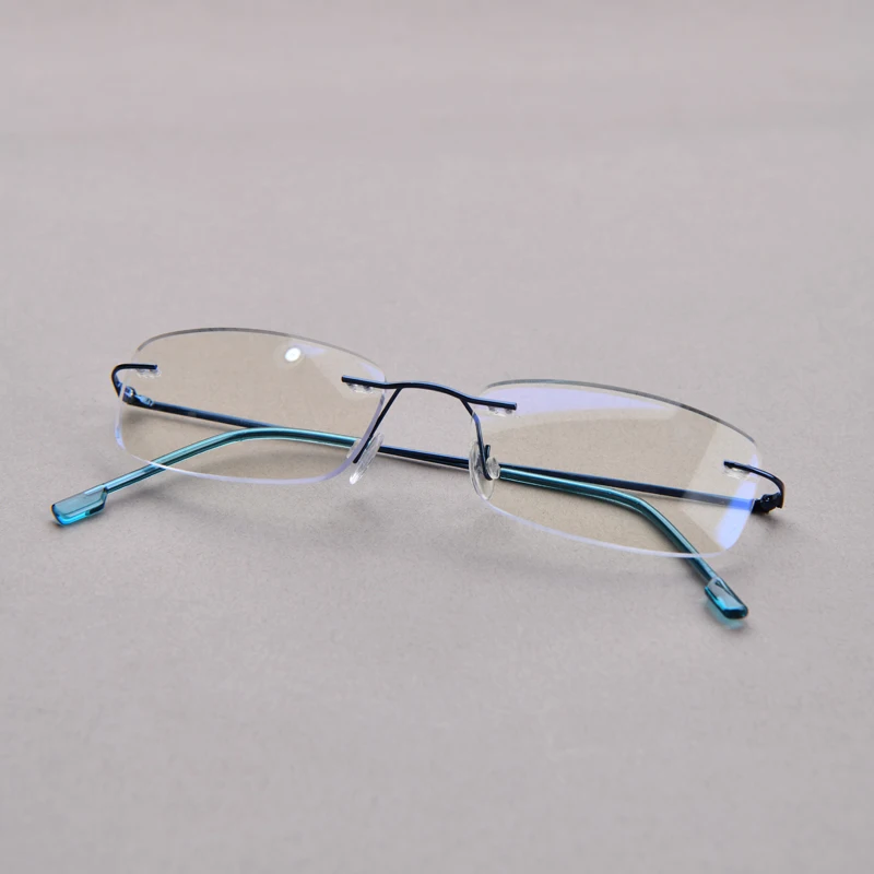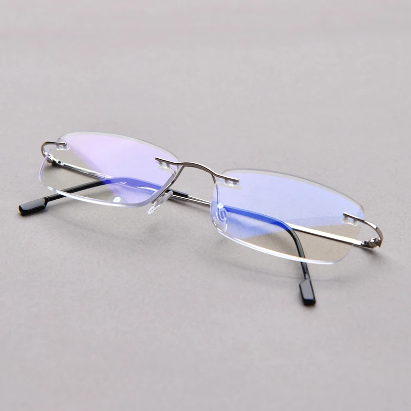Anti luz azul liga de titânio sem aro prata quadro masculino feminino retangular 10g óculos de leitura sem aro prescrição