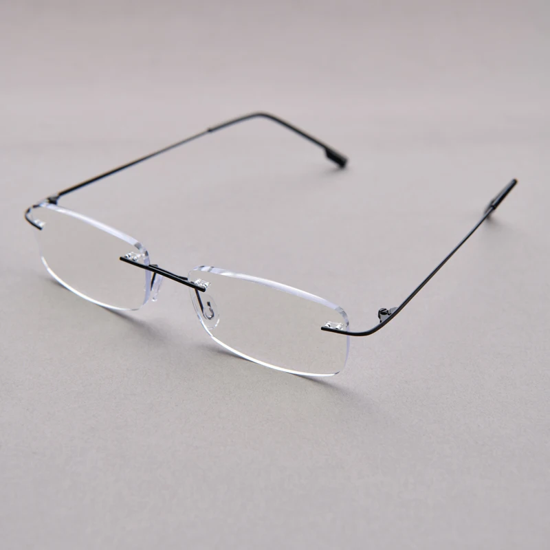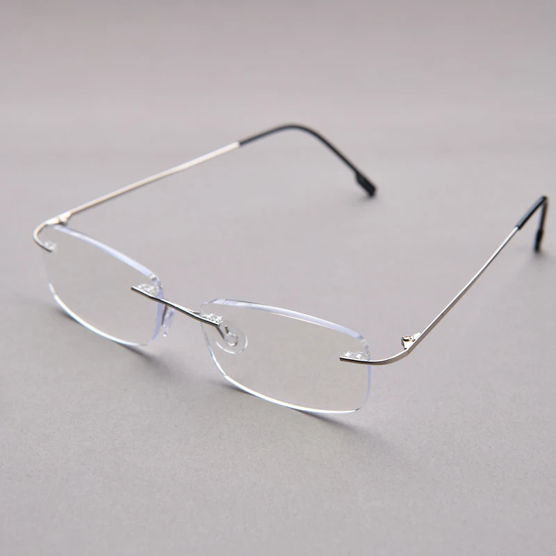 - > Anti luz azul liga de titânio sem aro prata quadro masculino feminino retangular 10g óculos de leitura sem aro prescrição