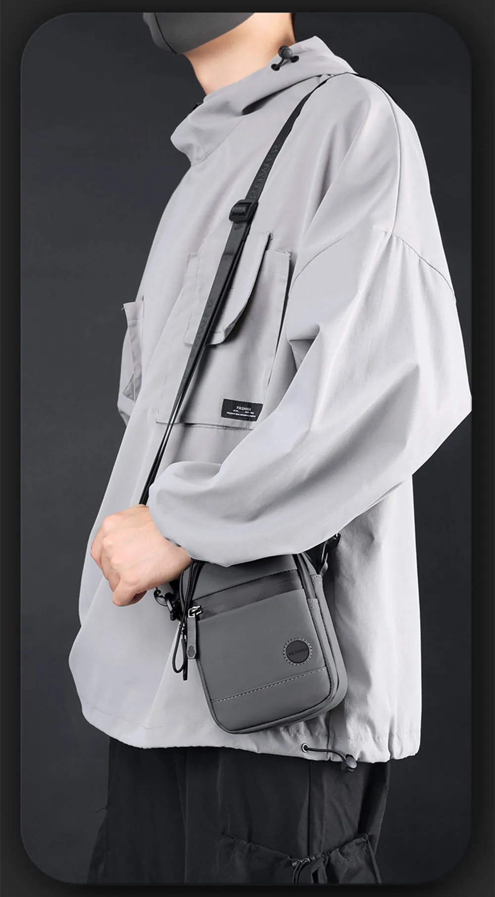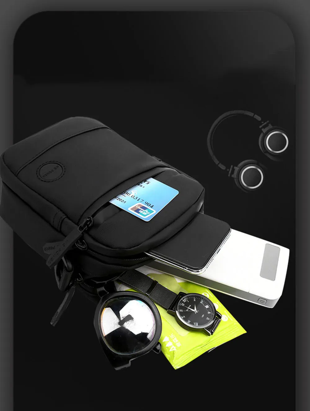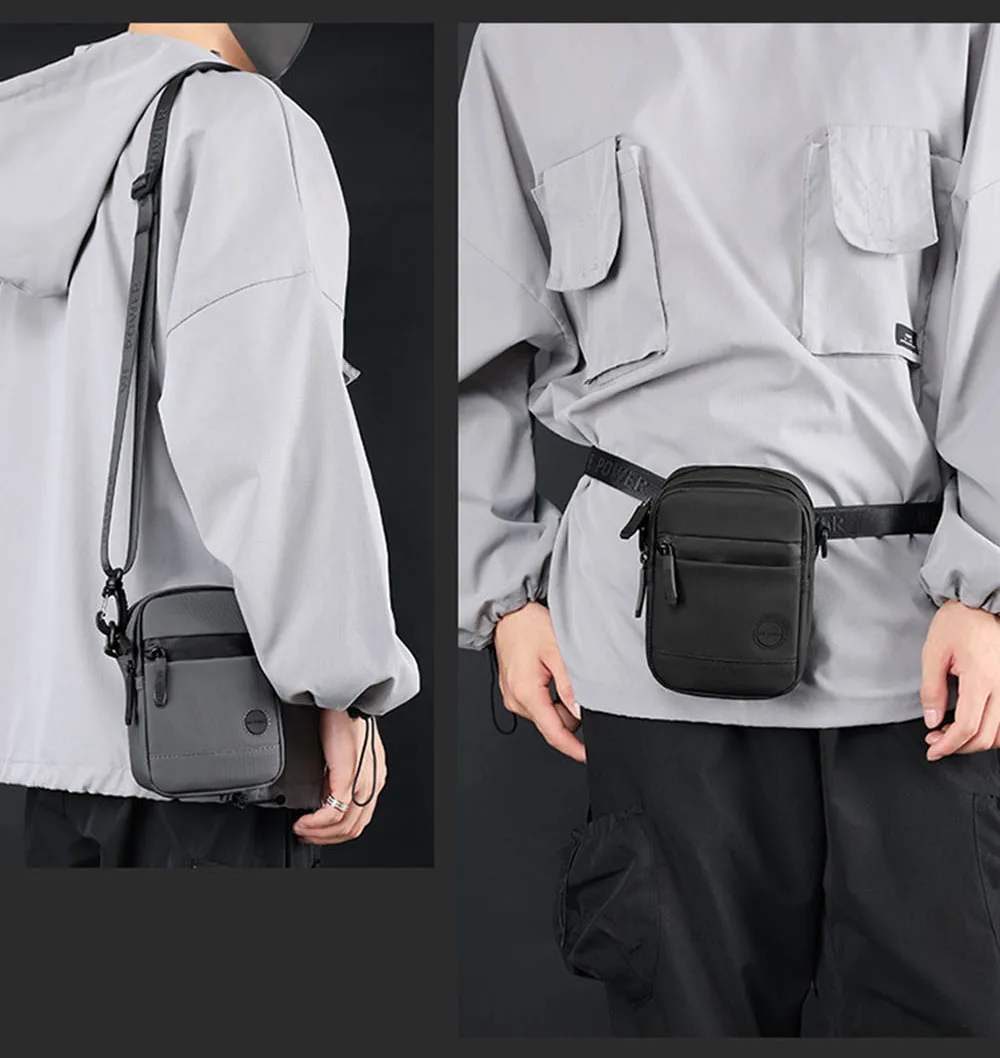 - > Ao ar livre casual masculino ombro único crossbody saco de luxo moda viagem mini saco peito náilon fanny pacote usb fone ouvido jack