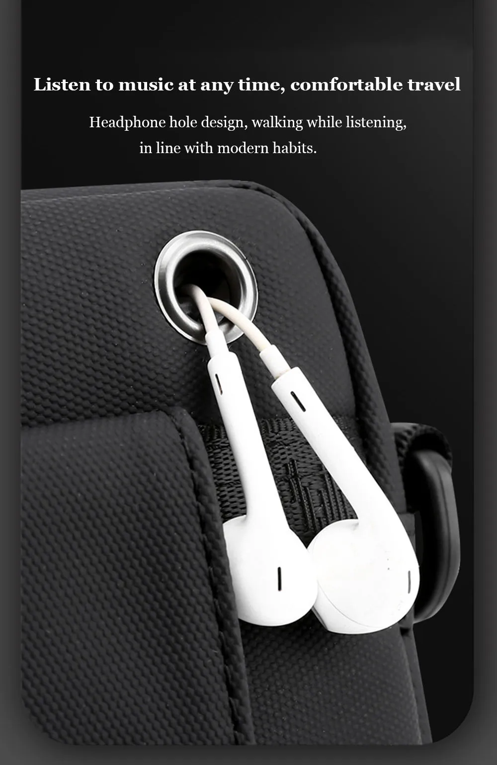 Ao ar livre casual masculino ombro único crossbody saco de luxo moda viagem mini saco peito náilon fanny pacote usb fone ouvido jack