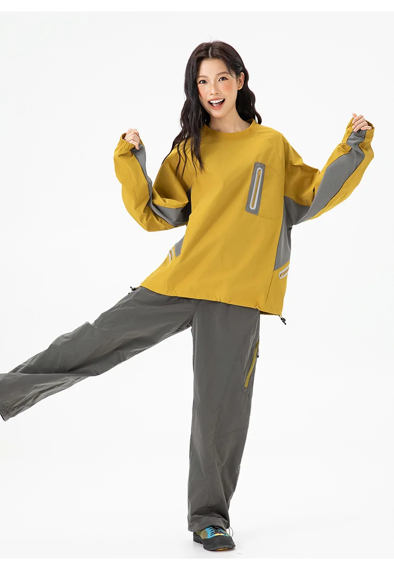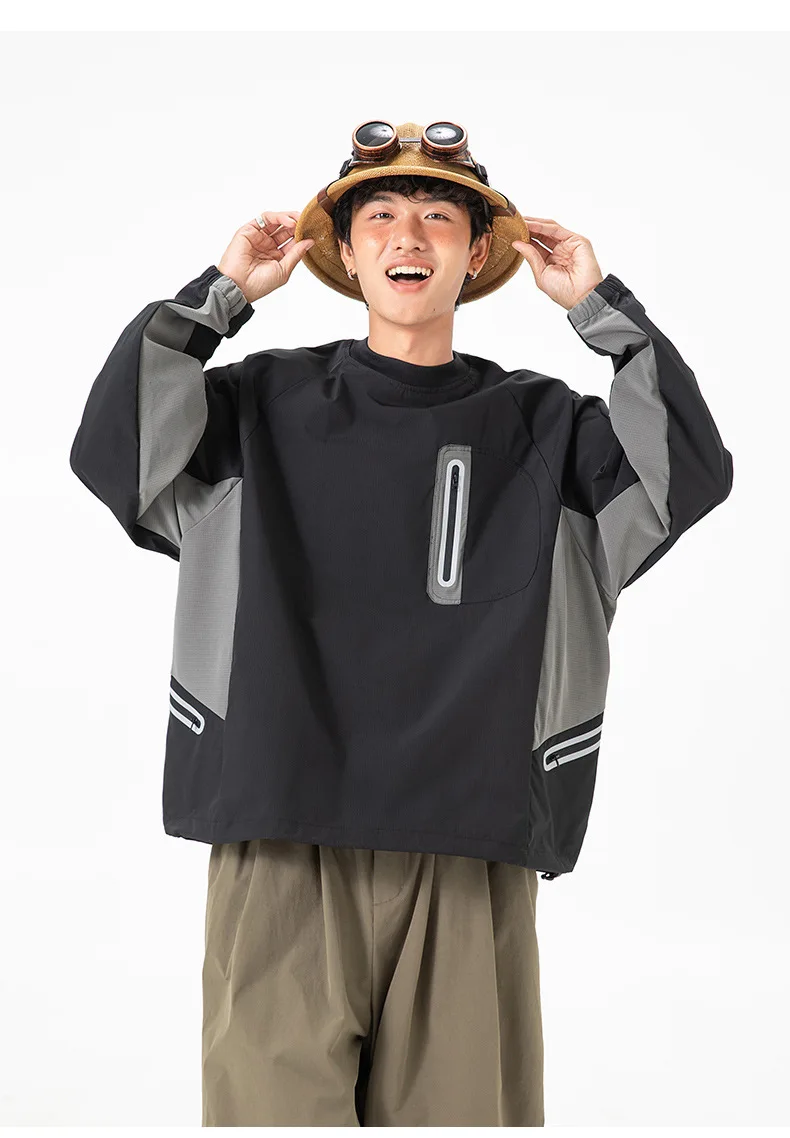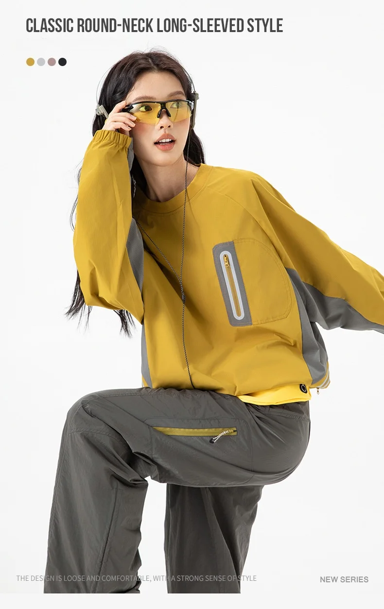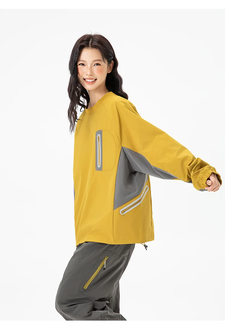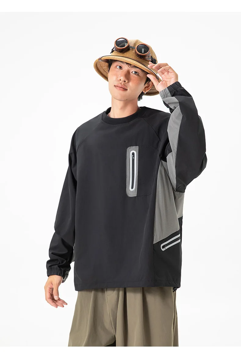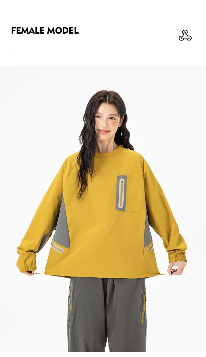 Ao ar livre resistente ao respingo reflexivo esportes manga longa camiseta feminino masculino à prova de vento outono leve retalhos cor-bloco topo