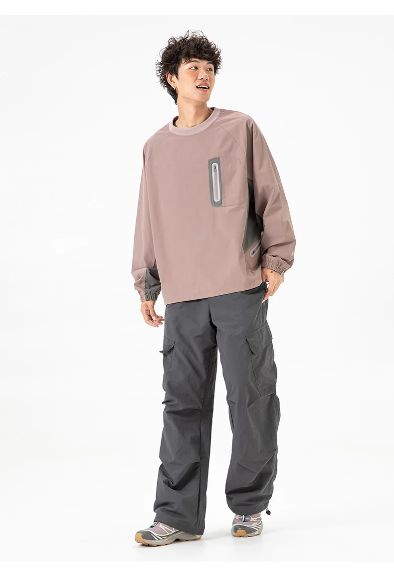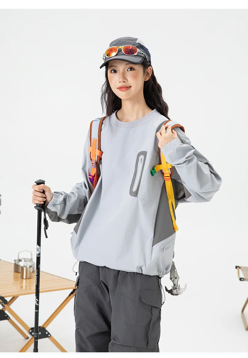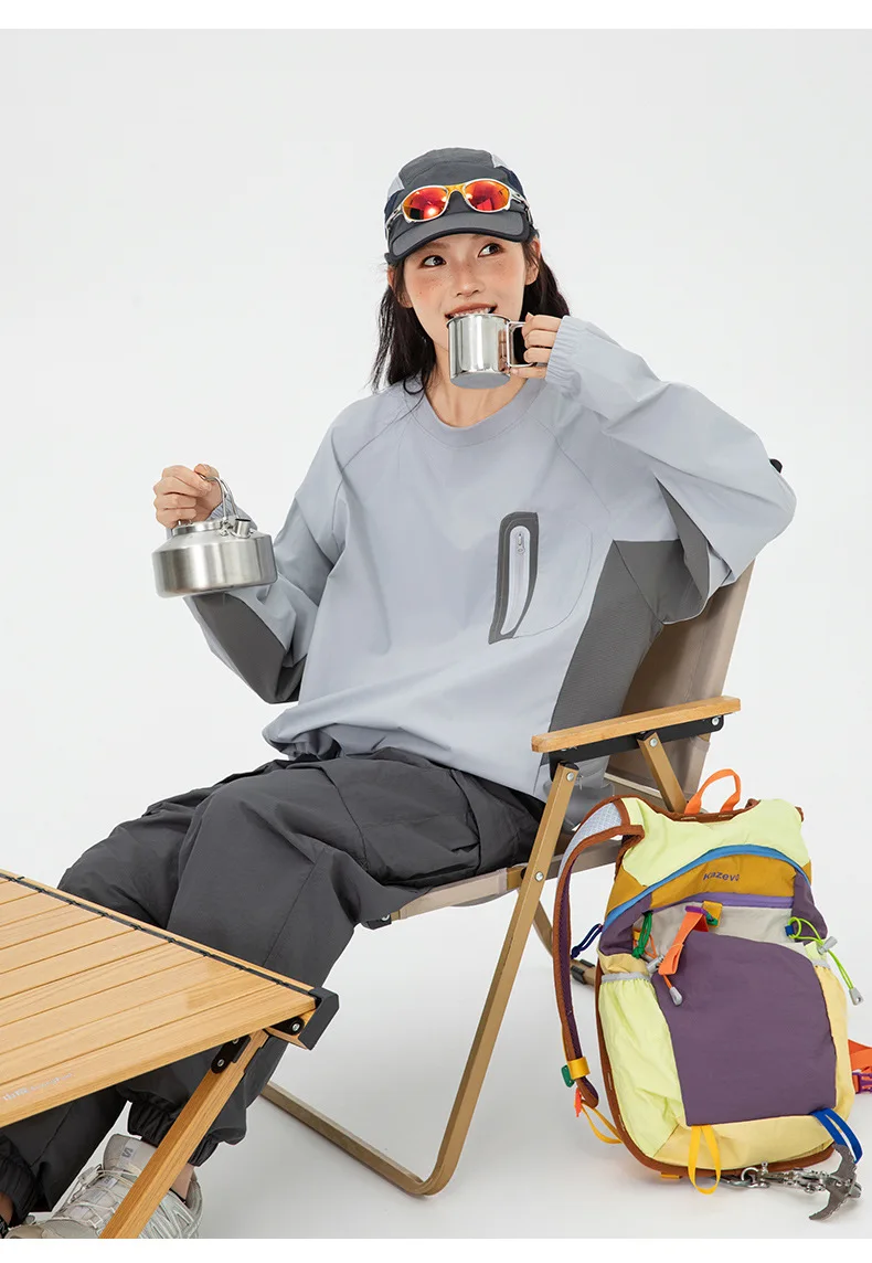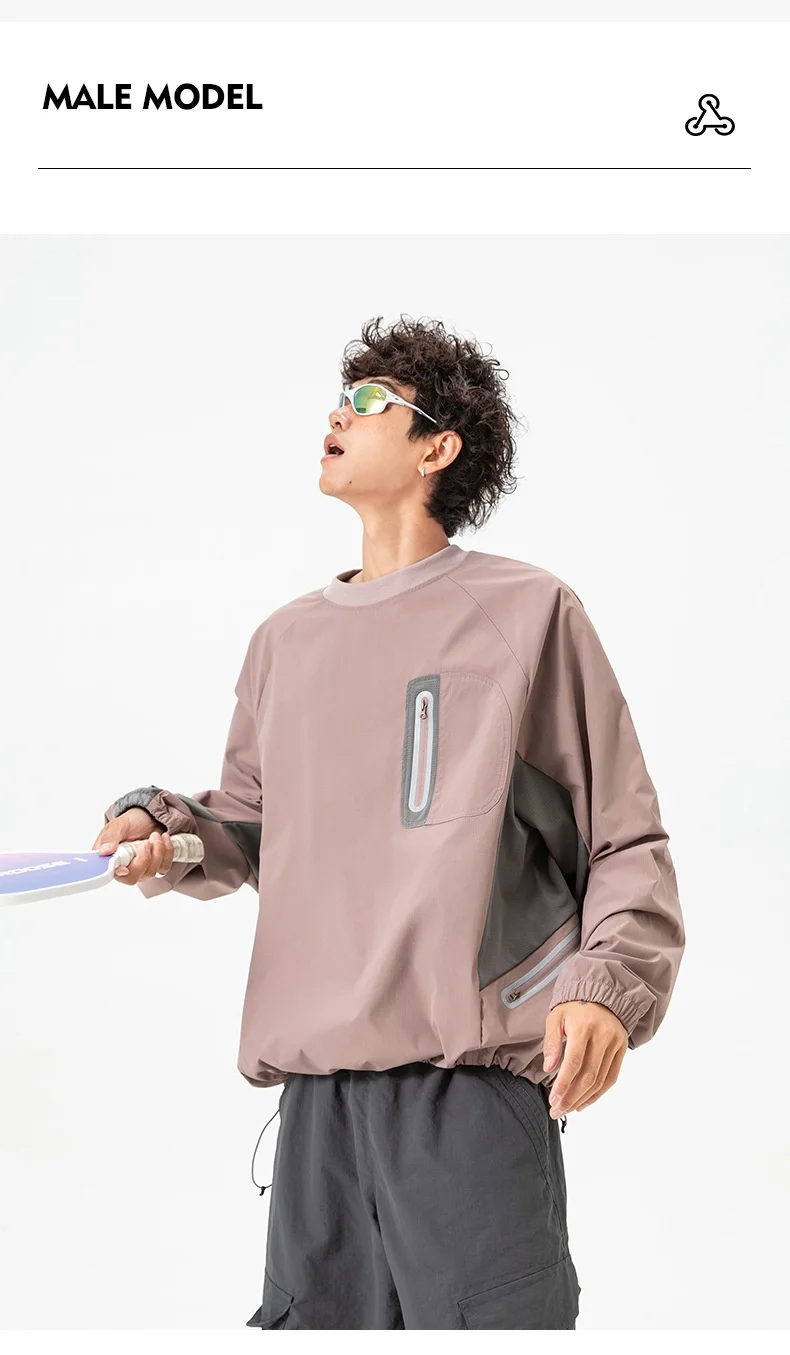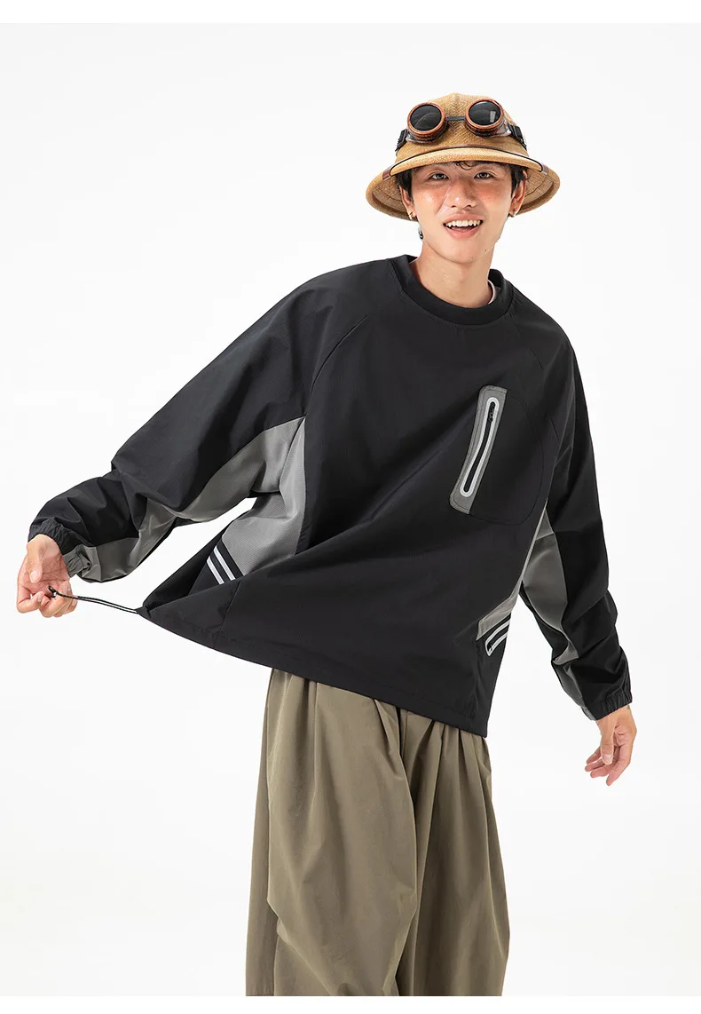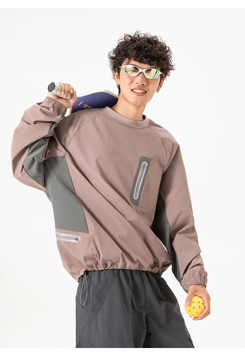 Ao ar livre resistente ao respingo reflexivo esportes manga longa camiseta feminino masculino à prova de vento outono leve retalhos cor-bloco topo