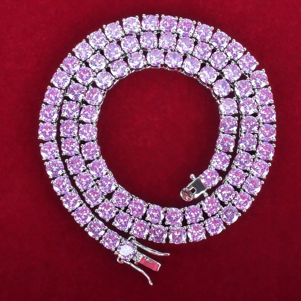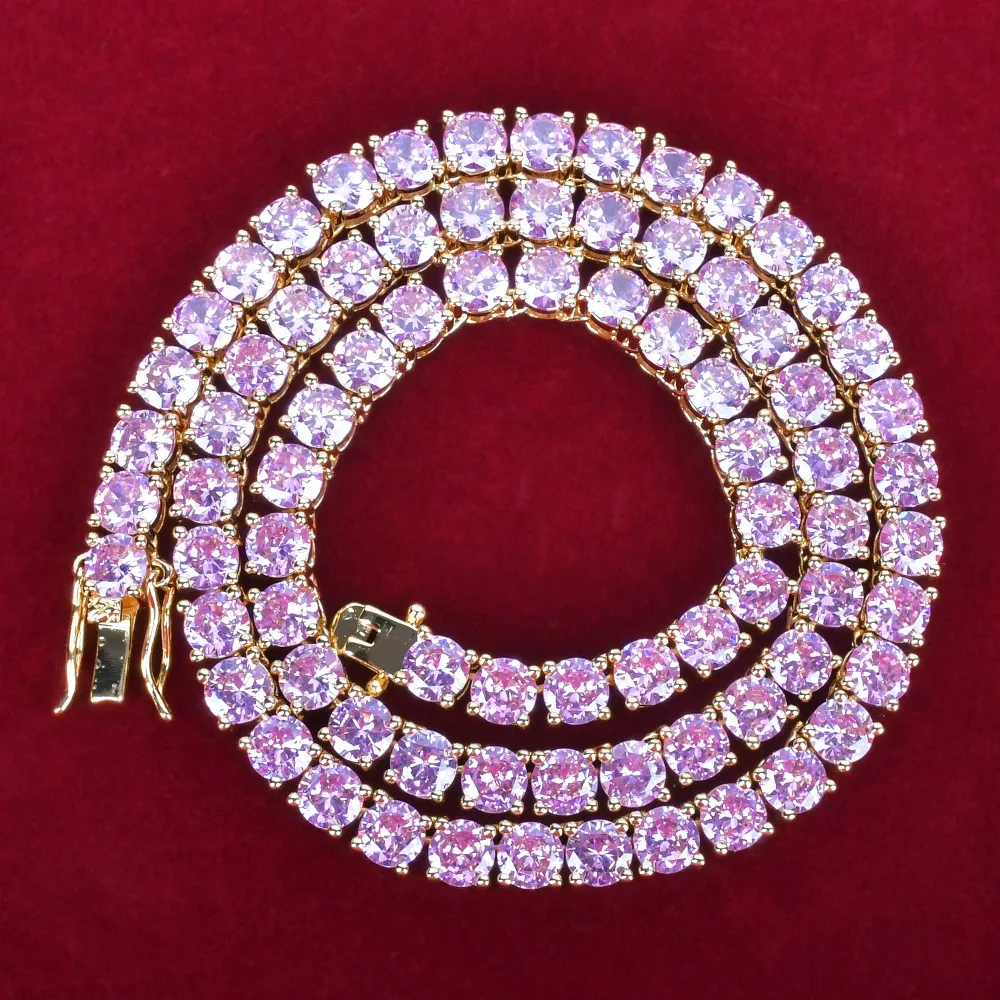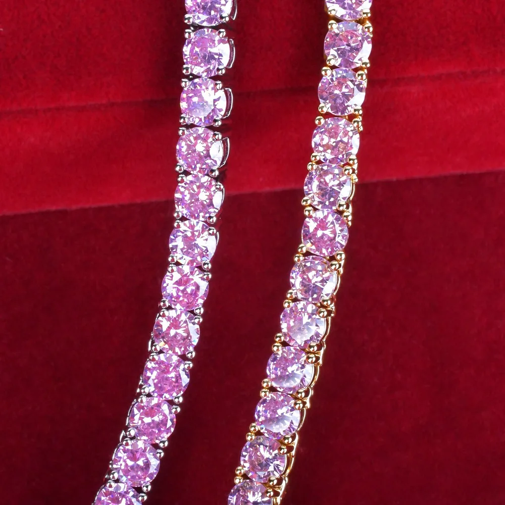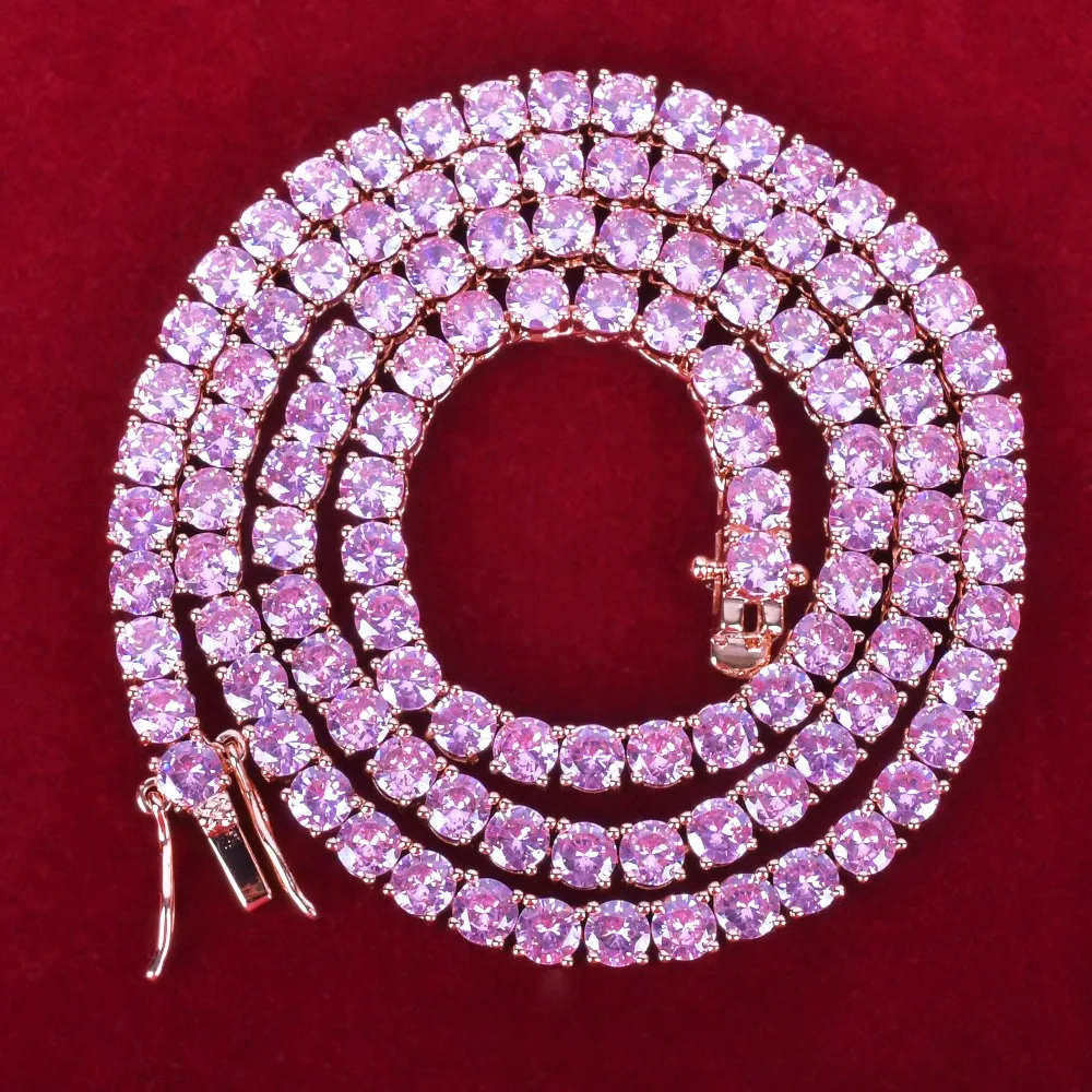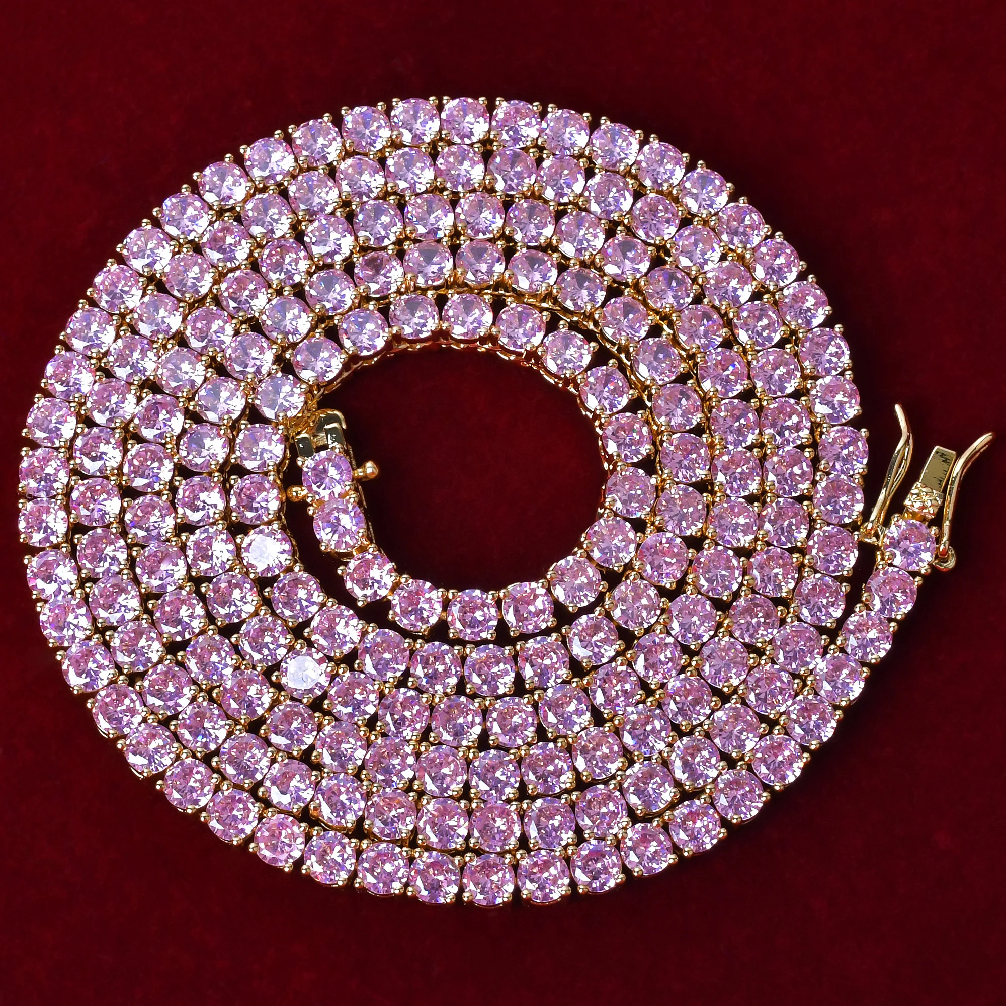 - > Aokaishen gargantilha masculina colar rosa zircão cúbico corrente de tênis hip hop jóias frete grátis itens 2021 tendência