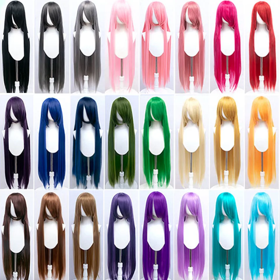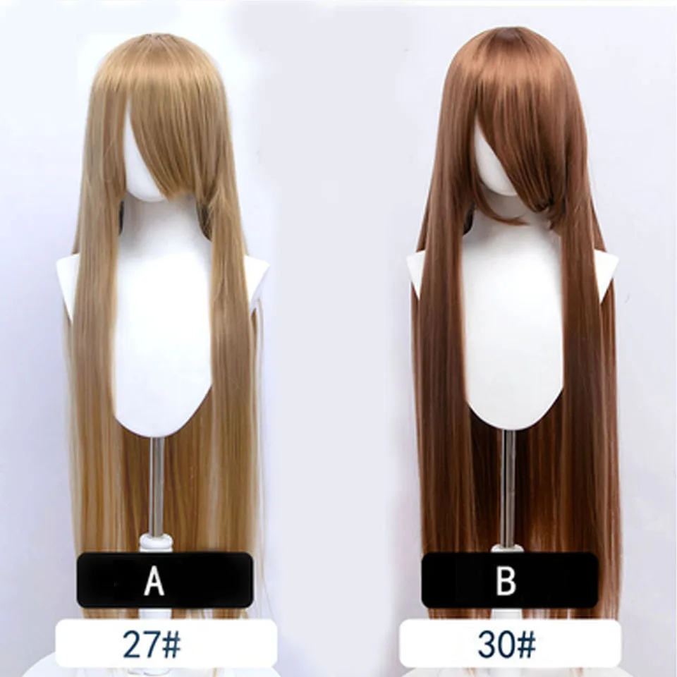 - > Aosi 100cm longo staight cosplay peruca de cabelo sintético preto branco vermelho rosa marrom ouro azul feminino resistente ao calor anime perucas