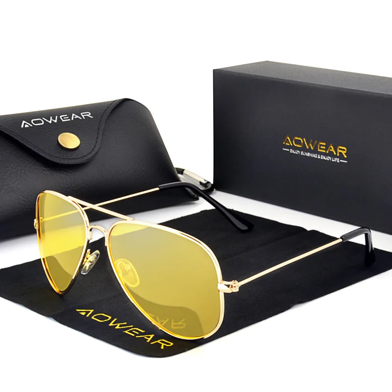 Aowear marca 3025 óculos de visão noturna para dirigir polarizado aviação amarelo óculos de sol masculino visão noturna piloto