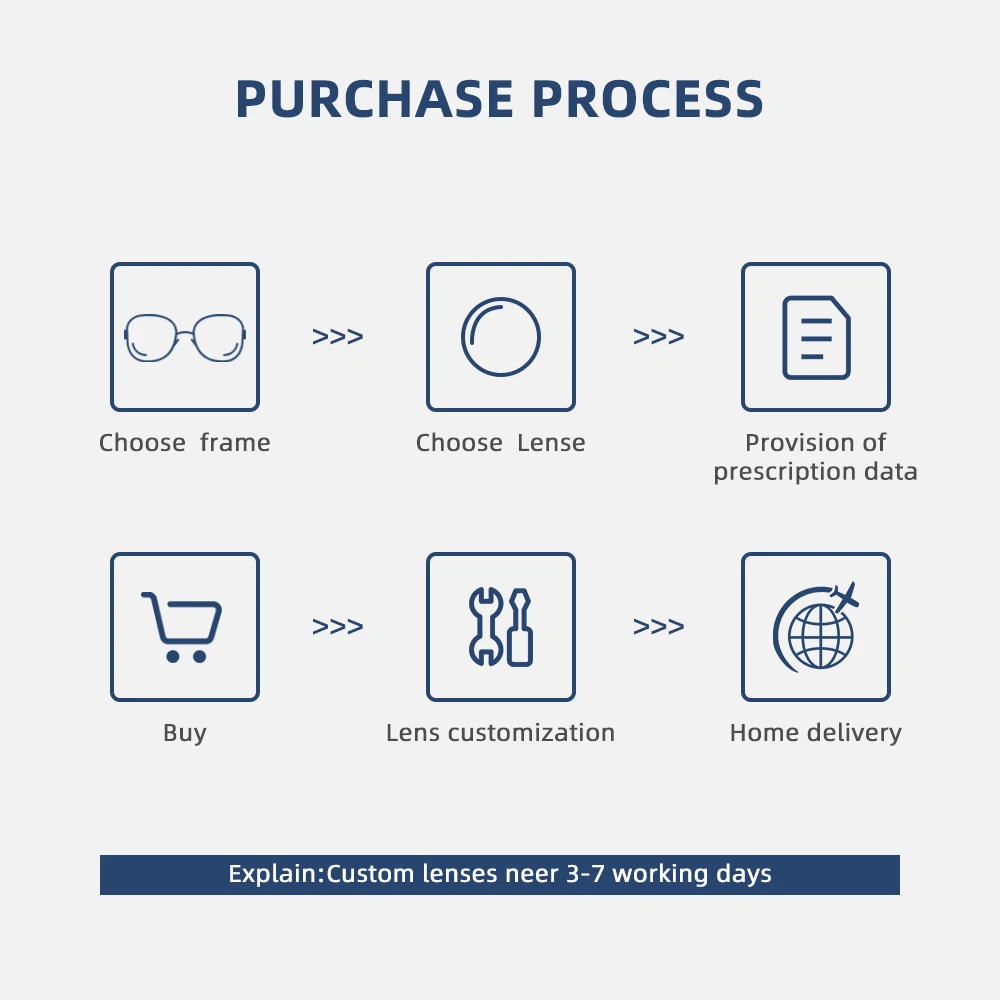 2.Tempo de produção de 4 a 7 dias para óculos graduados, aguarde pacientemente;