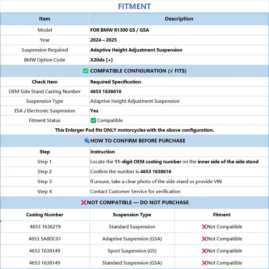 Aplicável para BMW R1300 GS / GSA (2024–2025), apenas para modelos equipados com Suspensão com Ajuste Adaptativo de Altura (Código de Opção X20da [+]).