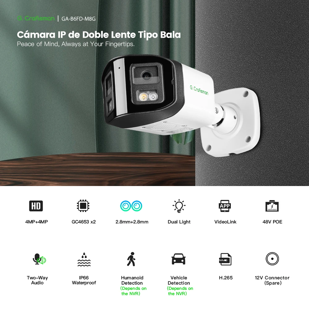 B-A, Câmera IP 4MP+4MP, POE, Dupla Lente, Detecção de Veículos e Pessoas, Vídeo para CFTV, Segurança e Vigilância P2P, Modelo GA-B6FD-M8G, do Brasil.