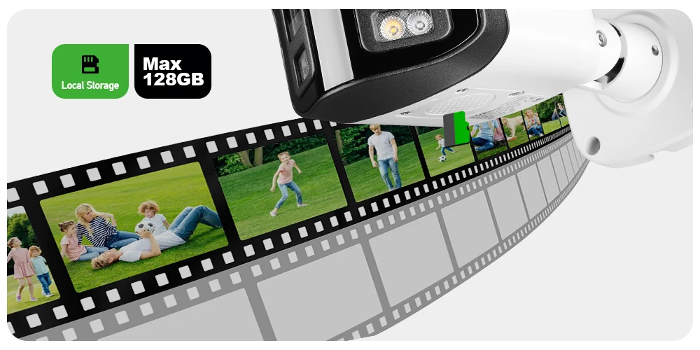 Cartão TF máximo de até 128 GB para armazenamento local e armazenamento seguro em nuvem para acesso remoto.Desfrute de proteção de dados confiável a qualquer hora e em qualquer lugar.