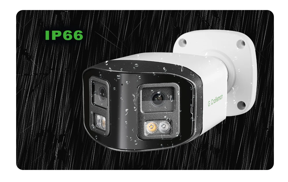 Com suporte à classificação IP66 de resistência às intempéries, que é o nível líder do setor, a Câmera de Rede G.Craftsman é bem protegida contra chuva e neblina para garantir o desempenho.