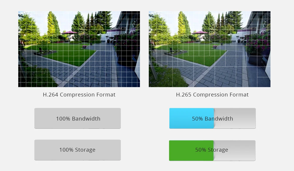 Menor largura de banda/Menos espaço de armazenamento/Melhor qualidade de imagem