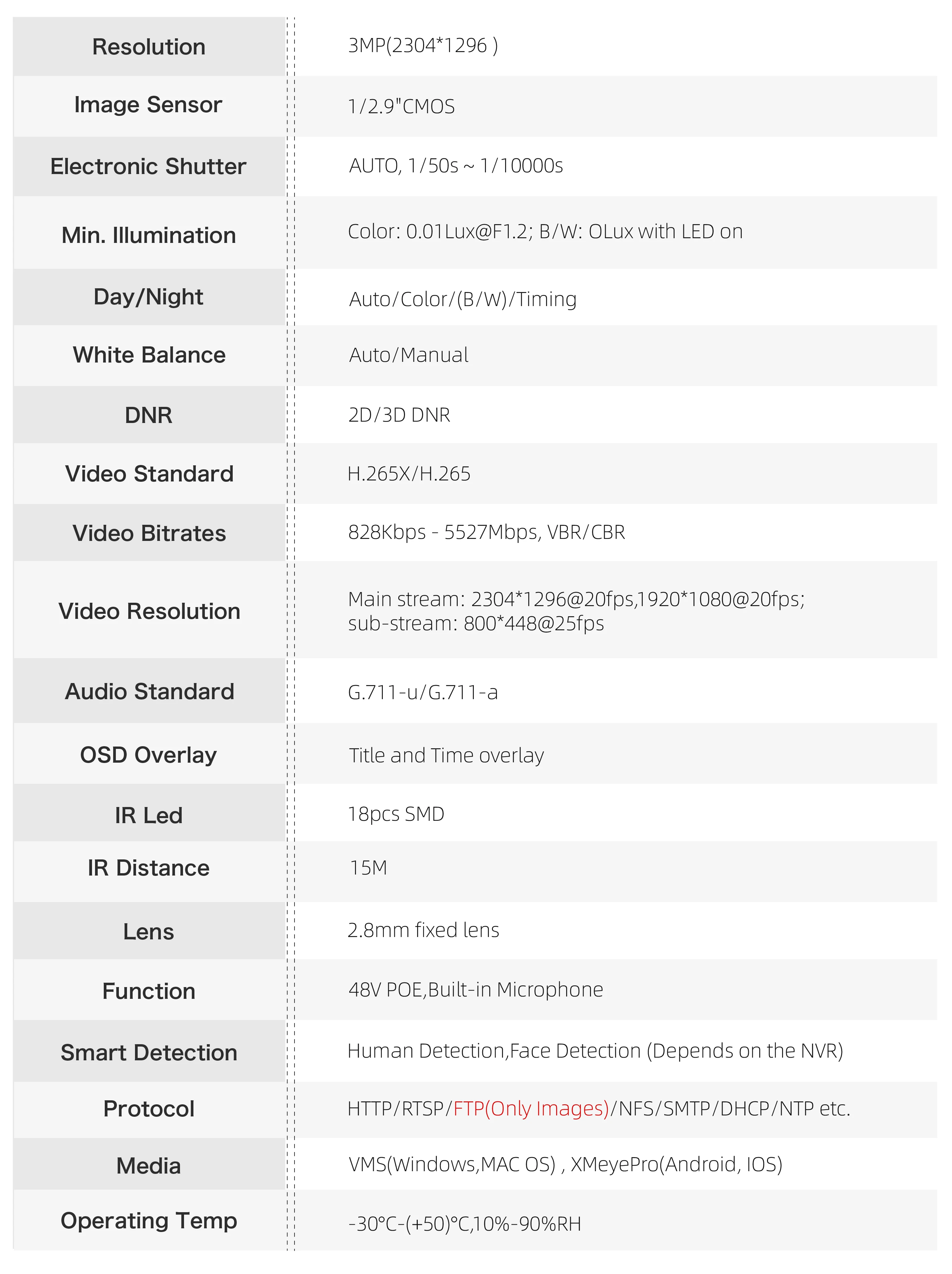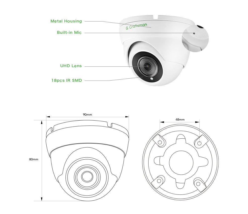 Distância infravermelha de 15M. Para maximizar o desempenho IR, a Câmera G.Craftsman inovou tanto na estrutura quanto na tecnologia.A avançada tecnologia Smart IR II garante desempenho IR com intensidade de iluminação ajustável.A transmitância da luz infravermelha é bastante aumentada com o painel anti-reflexo IR que é bem projetado para melhor efeito IR.