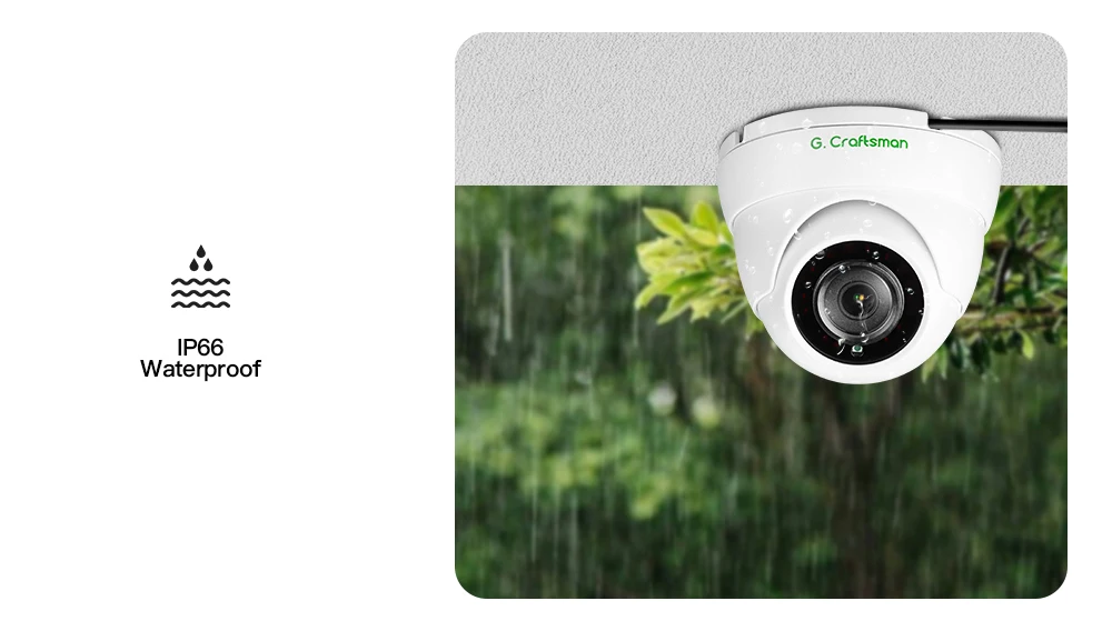 Com suporte à classificação IP66 de resistência às intempéries, que representa o nível líder da indústria, a Câmera de Rede G.Craftsman é bem protegida contra chuva e neblina para garantir o desempenho.