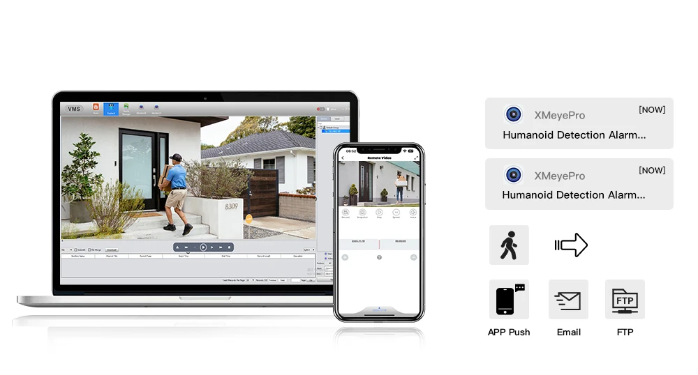 A câmera G.Craftsman pode identificar e distinguir com precisão entre pessoas e veículos.Seja para detectar um intruso ou um veículo suspeito se aproximando, o sistema reage rapidamente e envia alertas oportunos.Isso reduz alarmes falsos e aumenta sua segurança geral, fornecendo monitoramento preciso e em tempo real.