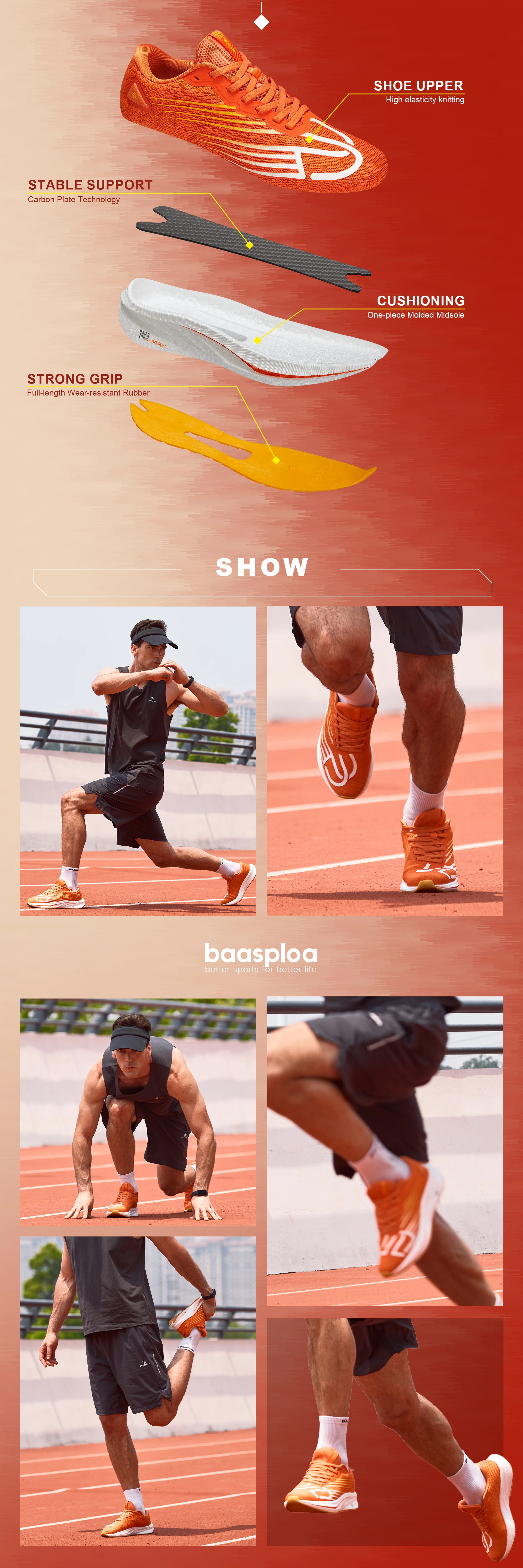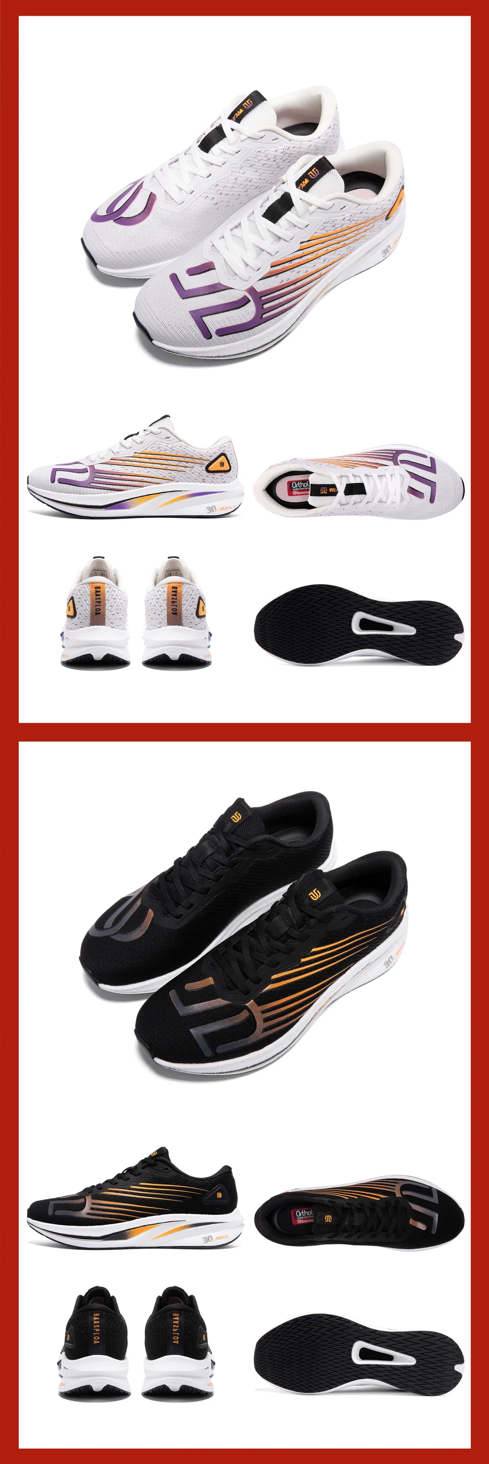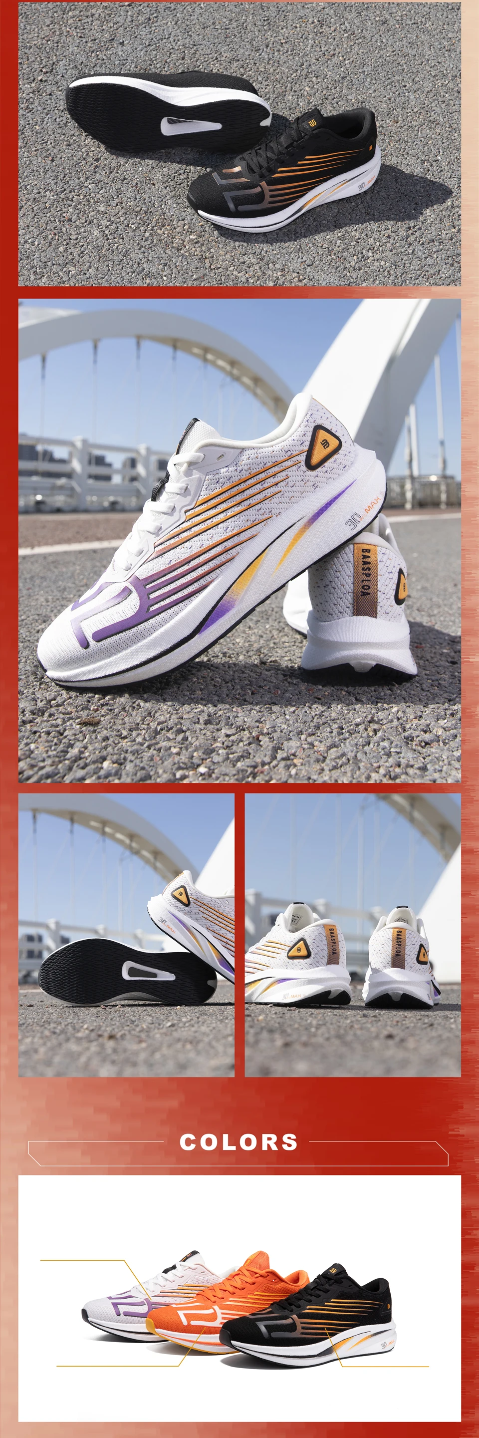 - > Baasploa Men Professional Running Shoes Leve Respirável Jogging Calçados Esportivos Feminino Placa de Carbono Anti-slip Sneakers