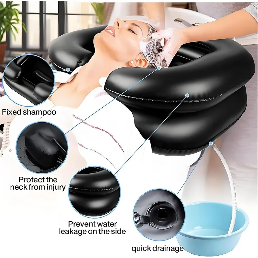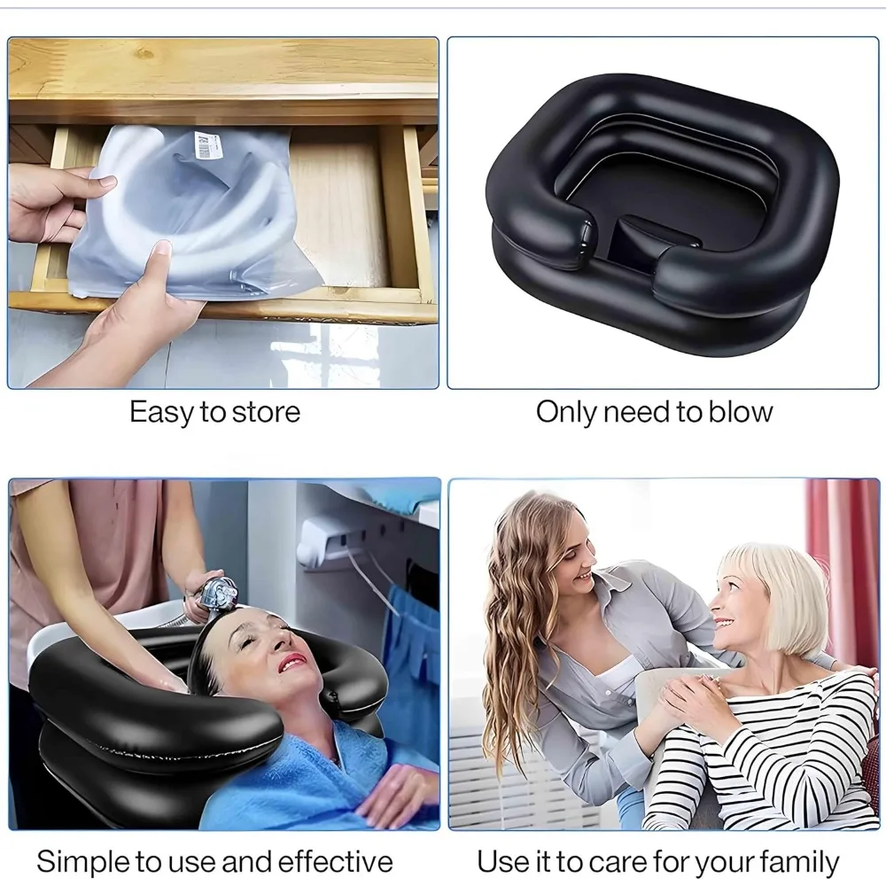 Bacia de lavagem inflável de PVC para lavagem de cabelo de cama - tigela de shampoo portátil com descanso de pescoço para cuidados com pacientes idosos e deficientes