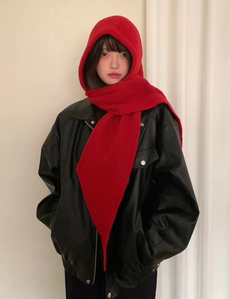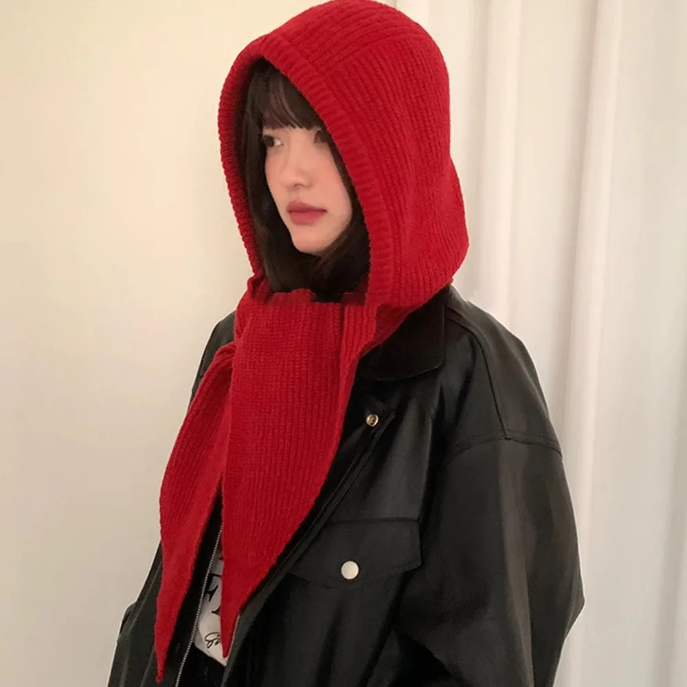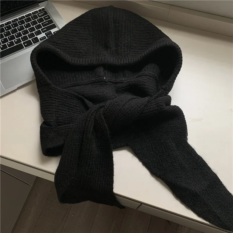 Balaclava coreana gorro gorro y2k chapéu cachecol de uma peça engrossado quente retro proteção do pescoço acessórios de inverno chapéu de lei de malha