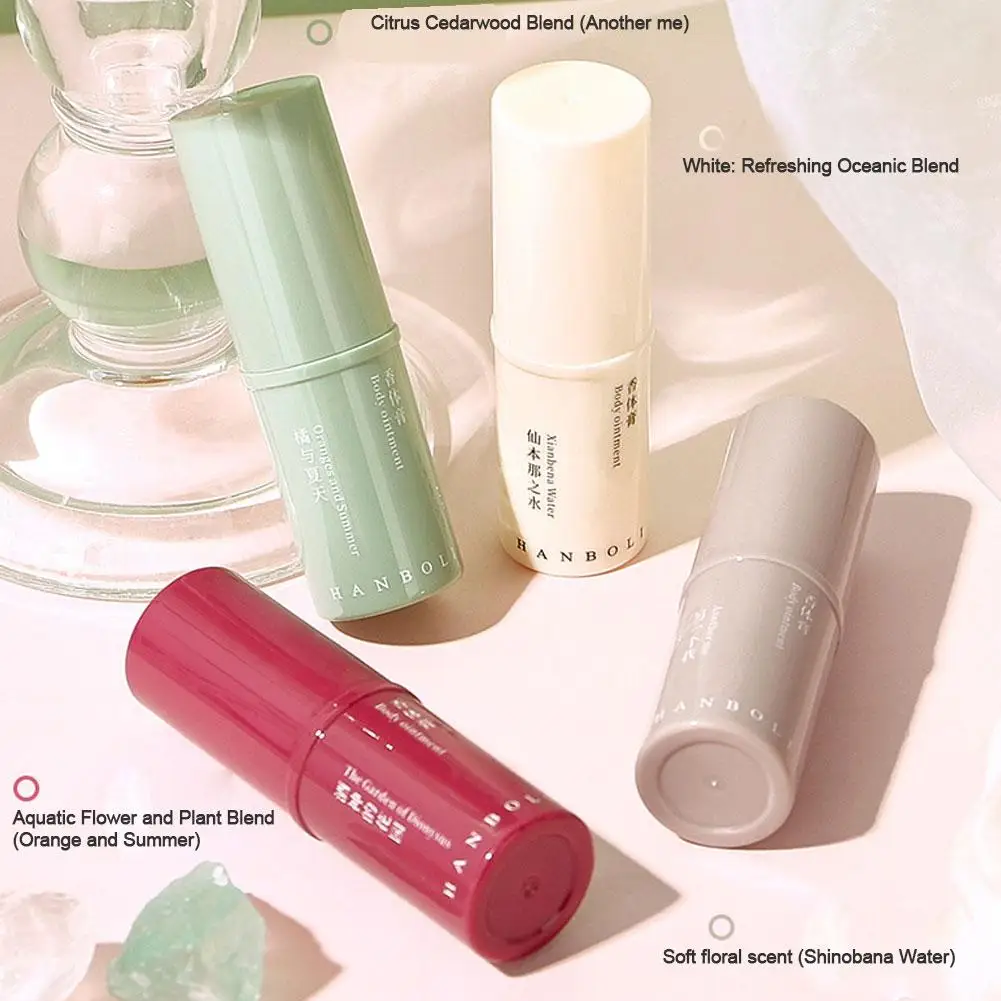 - > Bálsamo de fragrância rotativo portátil em bastão de perfume sólido de longa duração para mulheres e homens, perfume floral fresco/frutado tamanho de bolso