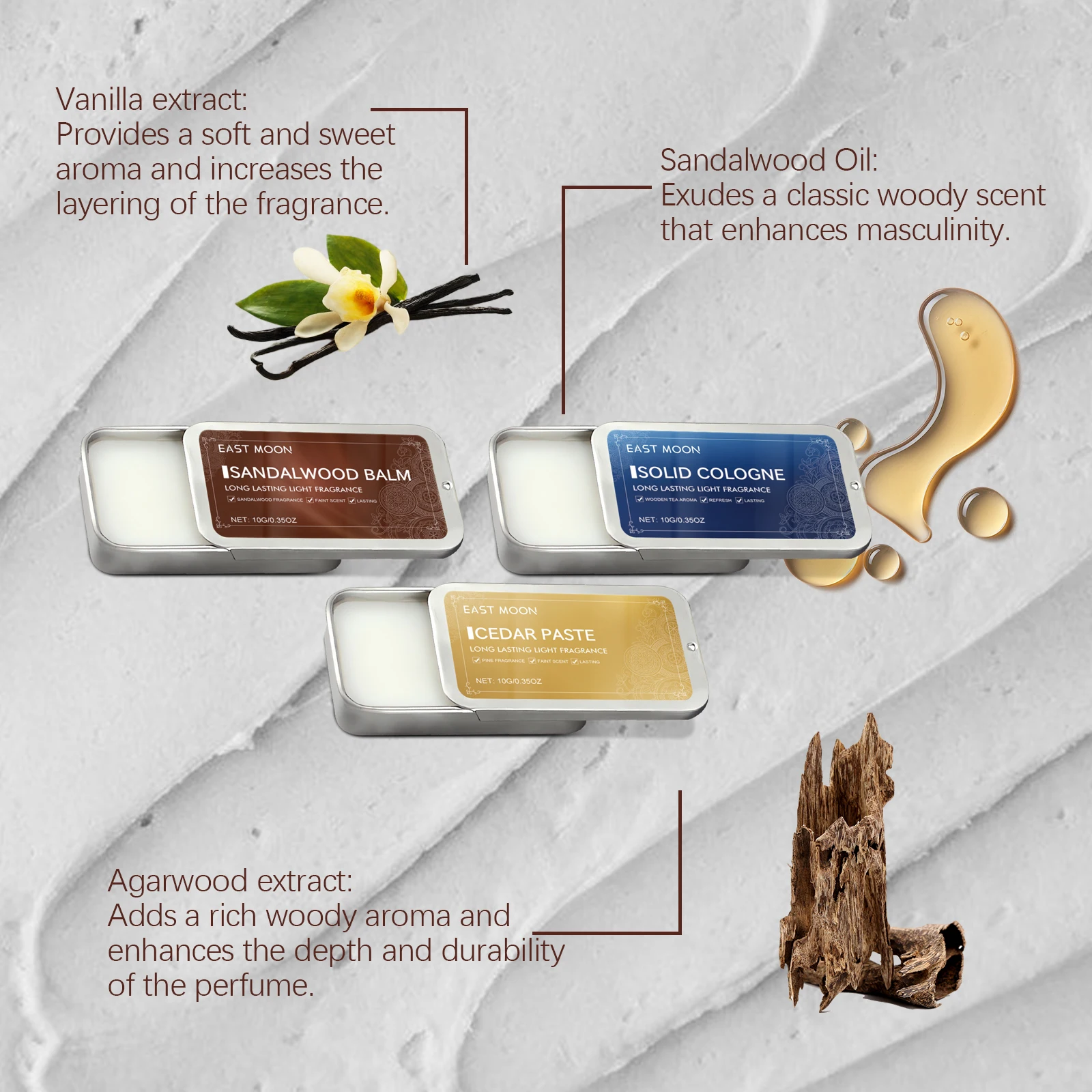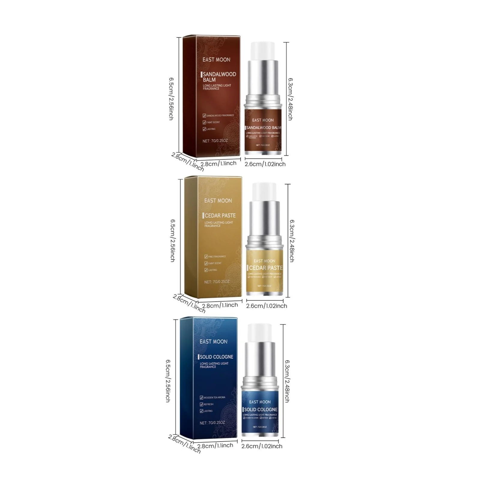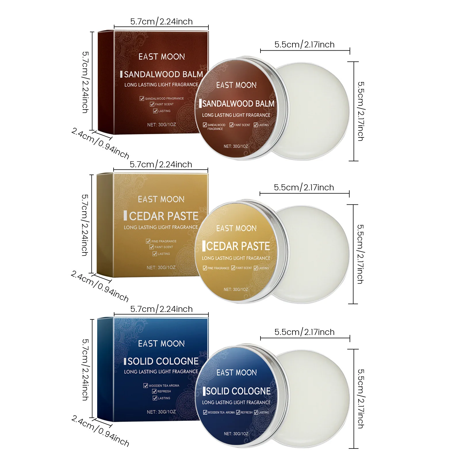 East Moon Men Sandalwood Balm Series Aroma duradouro Manter fresco Namoro Flertando Melhorar a tentação Corpo portátil Fragrância leve Bálsamos sólidos 7g/10g/30g