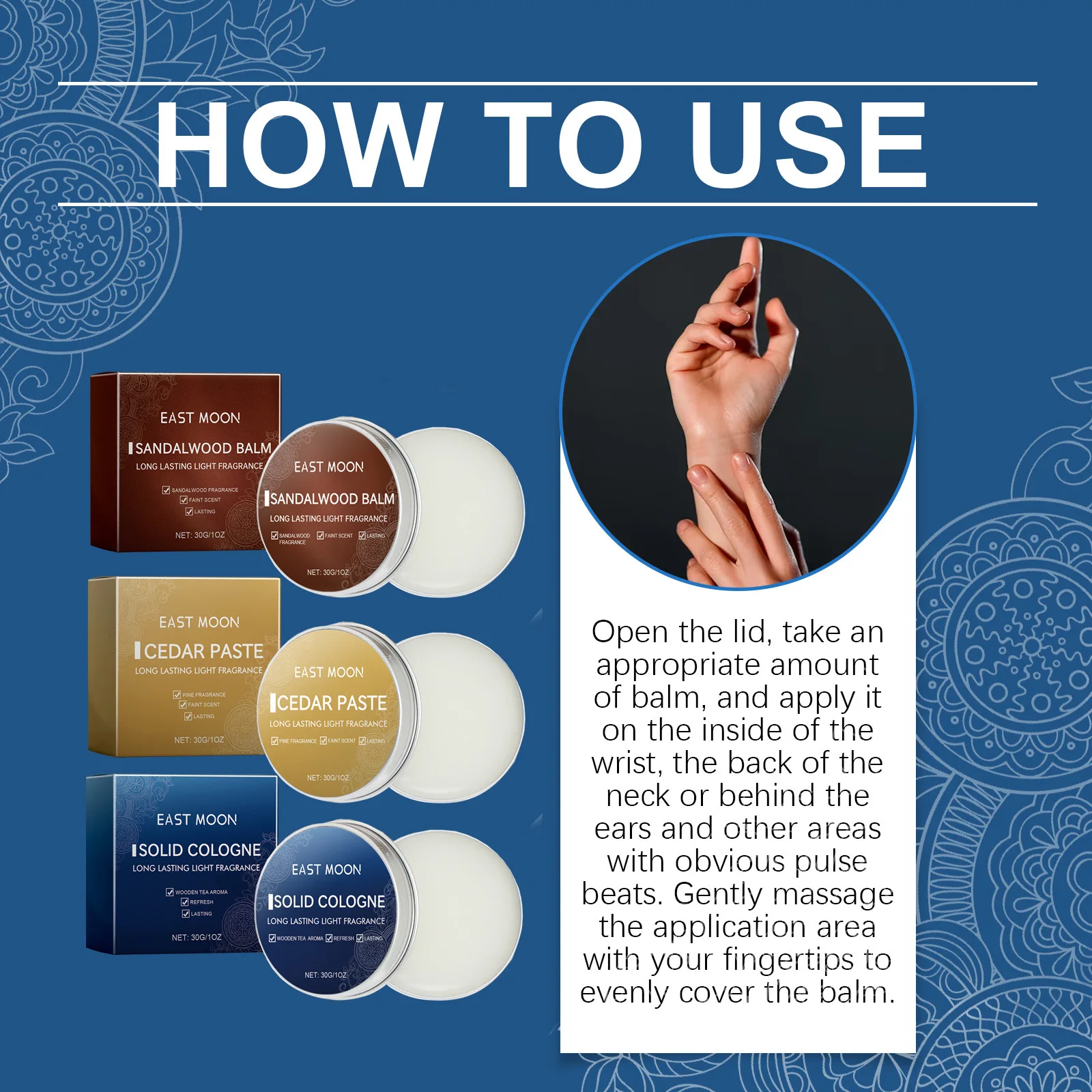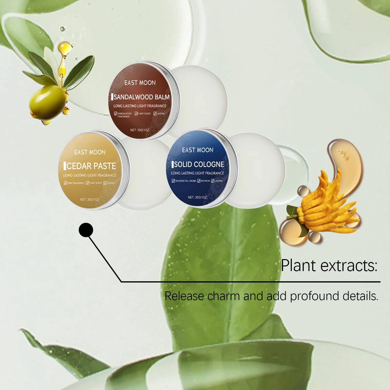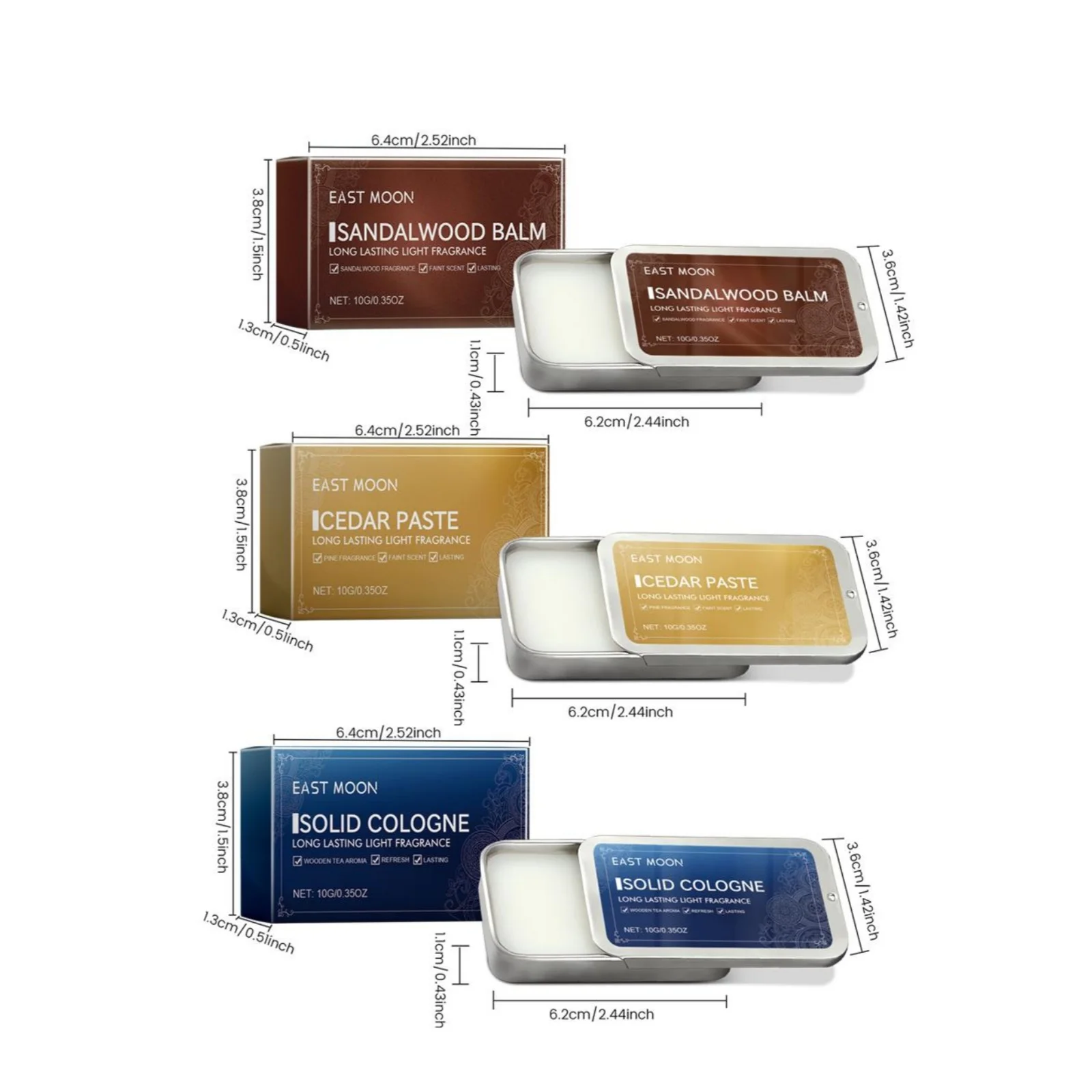 East Moon Men Sandalwood Balm Series Aroma duradouro Manter fresco Namoro Flertando Melhorar a tentação Corpo portátil Fragrância leve Bálsamos sólidos 7g/10g/30g