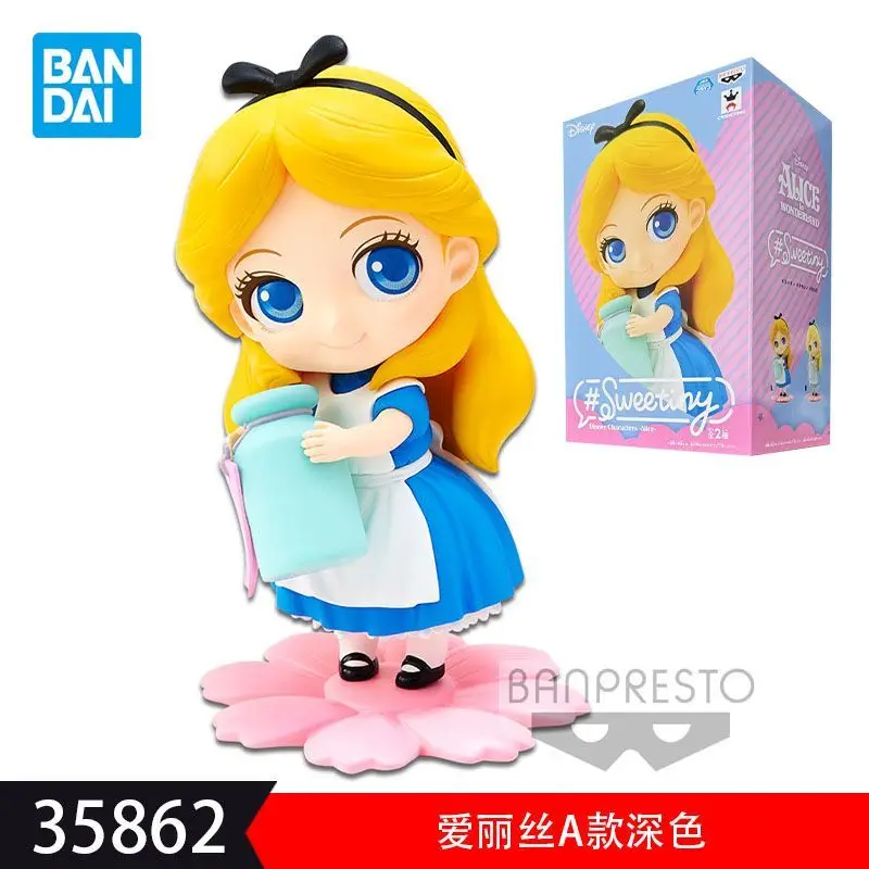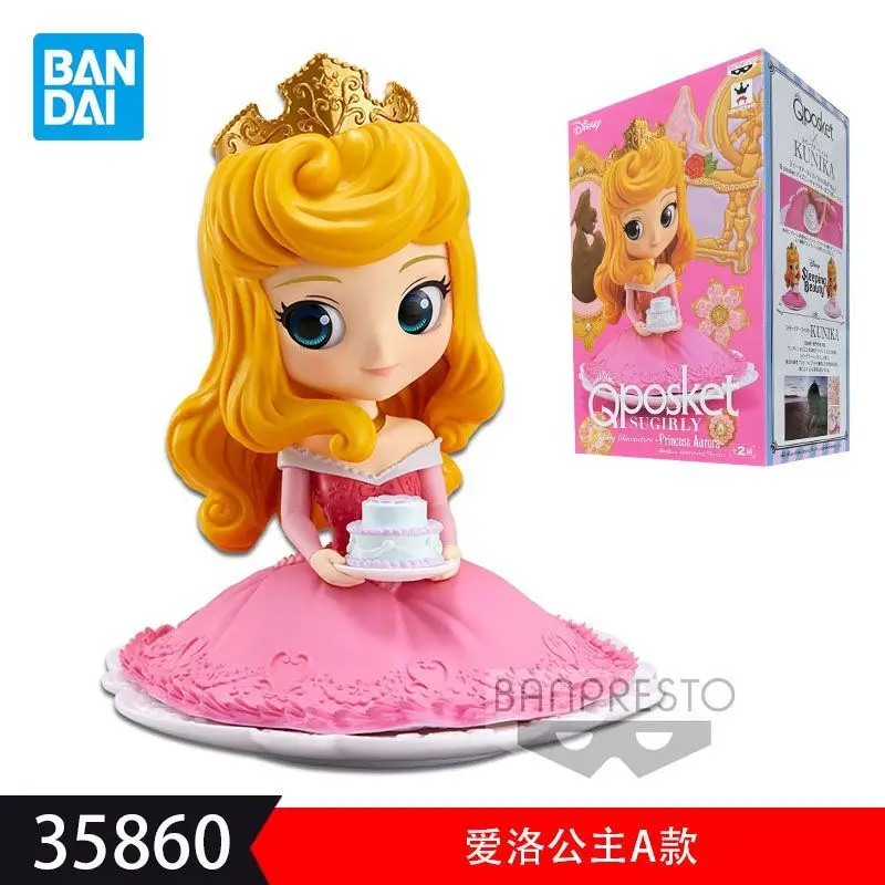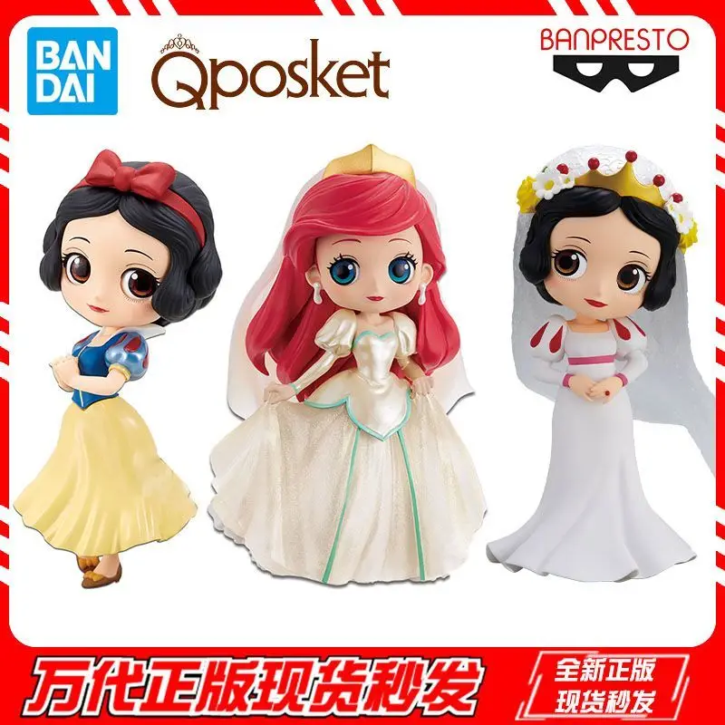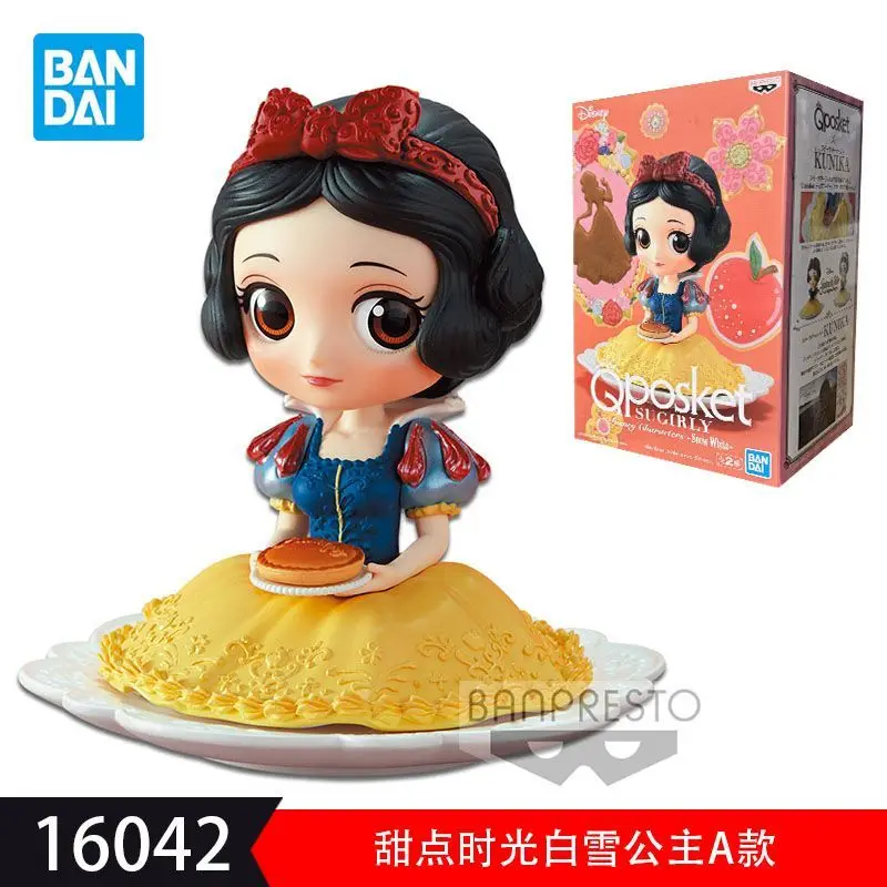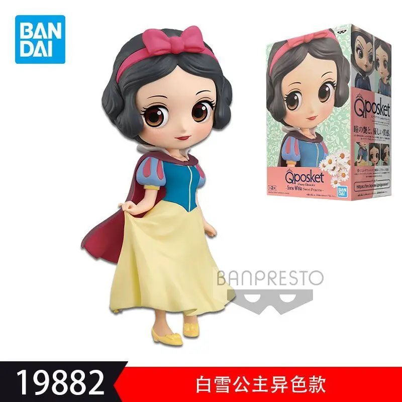 - > Bandai original qposket disney princesa anime figura neve branca aurora alice figura de ação brinquedos para meninos meninas presente modelo