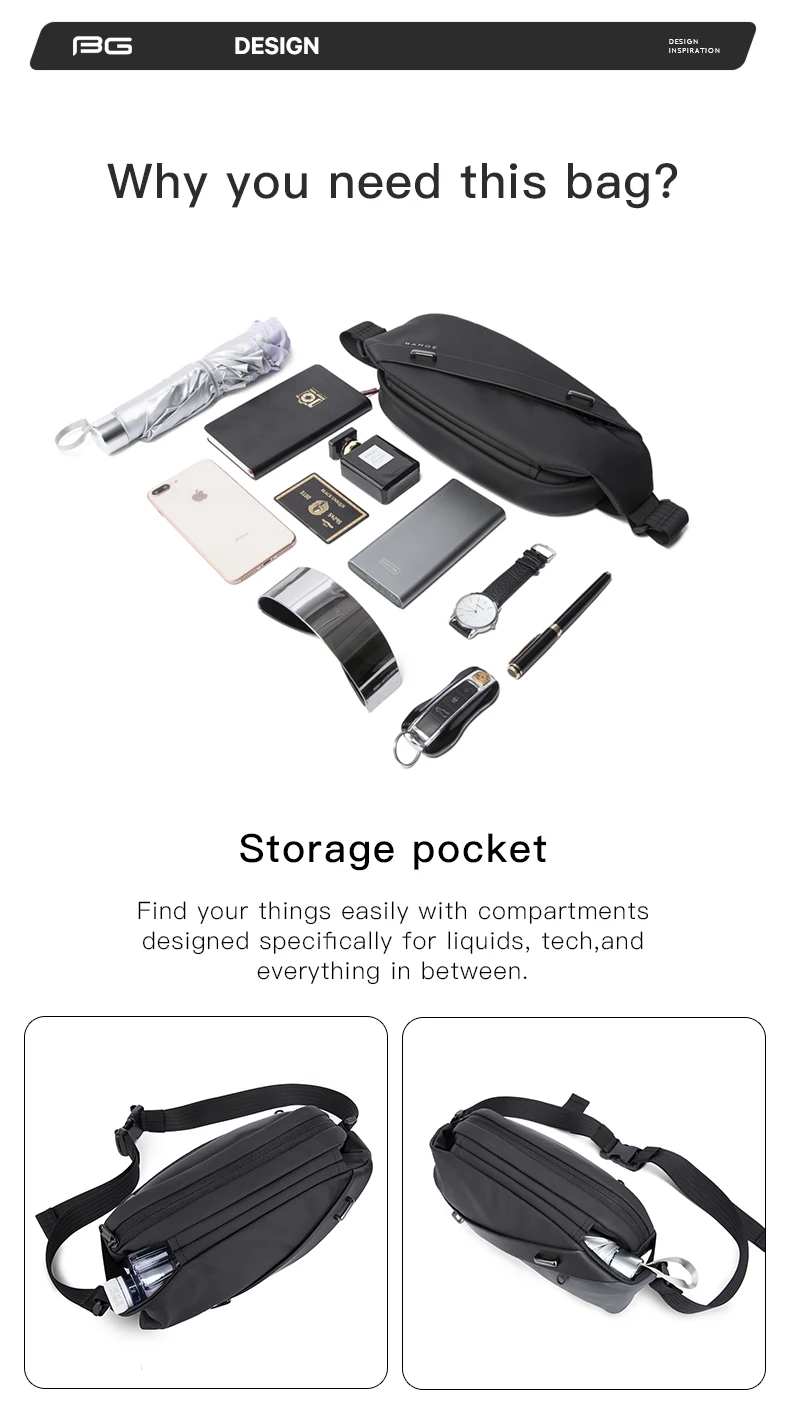 - > Bange grande capacidade à prova dwaterproof água multifuncional crossbody saco de ombro dos homens masculino estilingue sacos peito para cinto correspondência