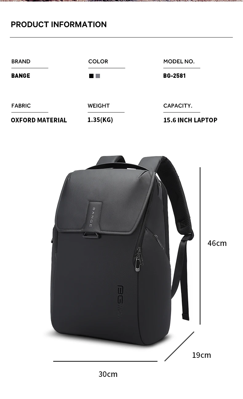 - > Bange-mochila portátil impermeável para homens e mulheres, mochila de negócios, 15.6 Polegada, 46x30x19