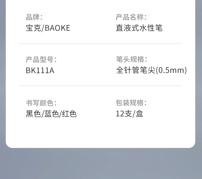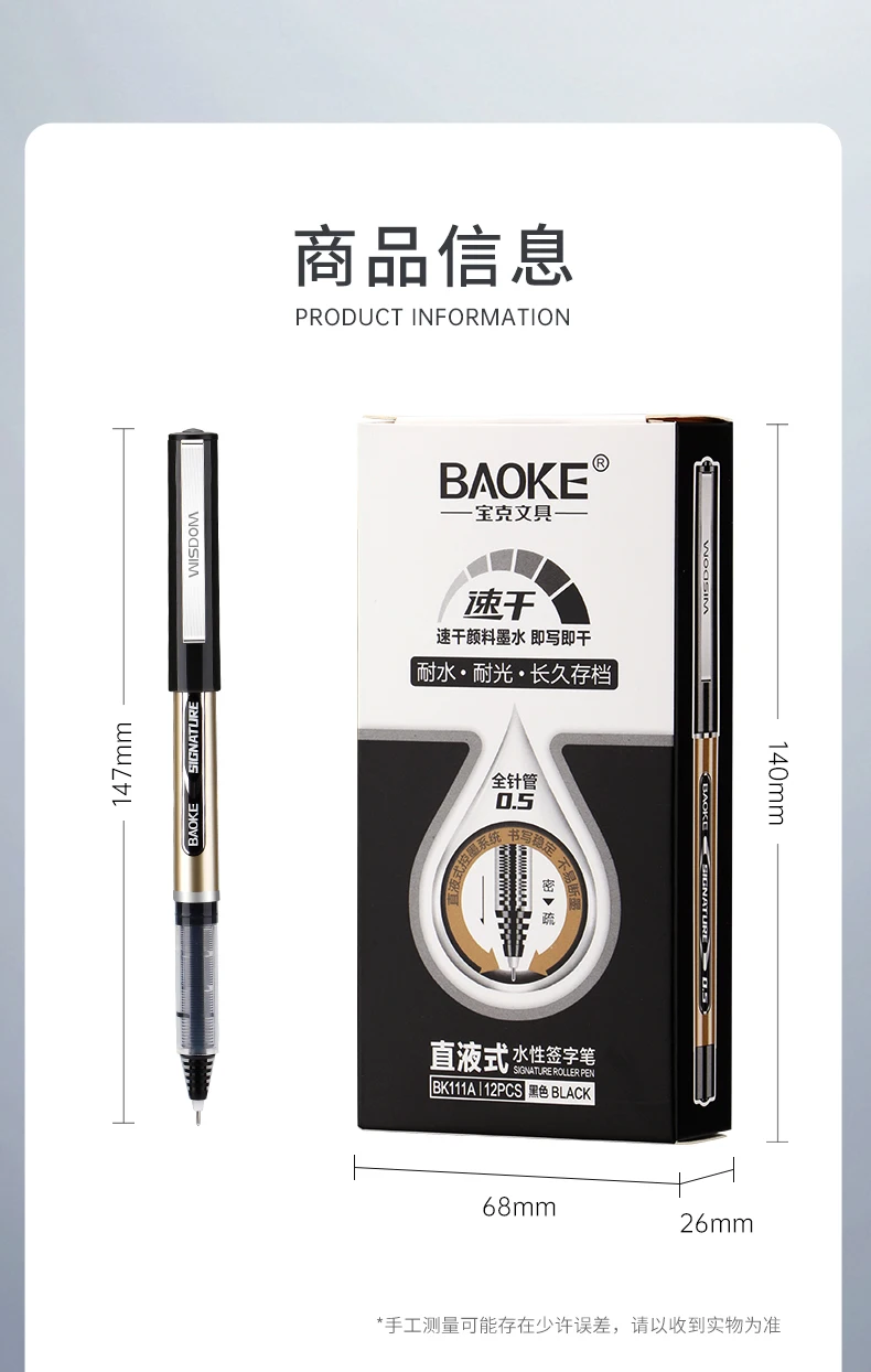 - > BAOKE BK111A Canetas Rollerball de 0,5 mm, caneta esferográfica de ponta extra fina de secagem rápida, canetas de tinta líquida Caneta de escrita suave de ponta fina