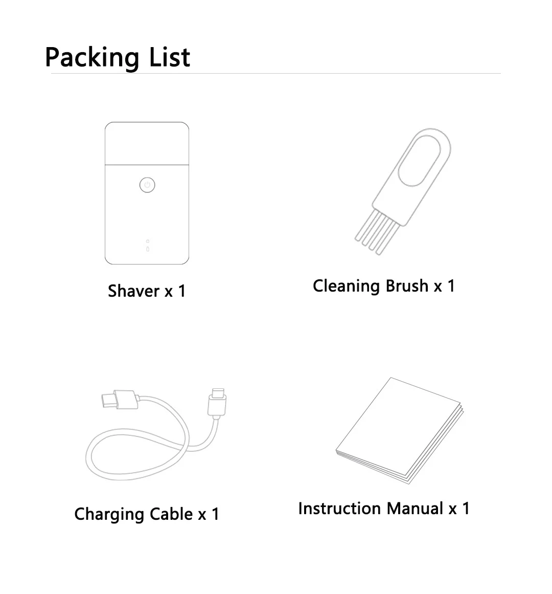 Este barbeador elétrico elegante, compacto e eficaz lhe trará confiança todos os dias com um barbear limpo e suave.Seu tamanho pequeno, design simples, sistema de lâmina dupla atualizado e recursos à prova de respingos de água significam que o barbeador elétrico portátil de lâmina dupla Mijia é o melhor parceiro para você bem cuidado.