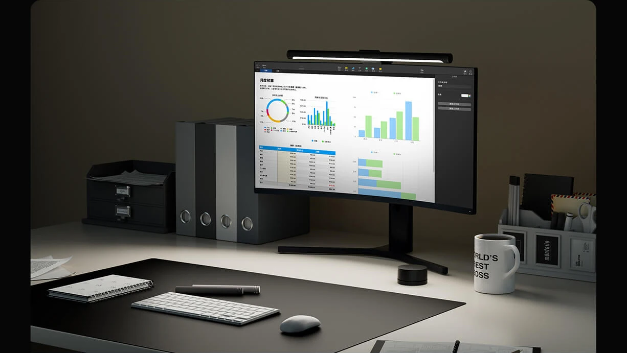 Barra de luz do monitor do computador Mi com seu monitor - é instalada facilmente e não ocupa espaço na sua área de trabalho, proporcionando uma experiência de iluminação totalmente nova.